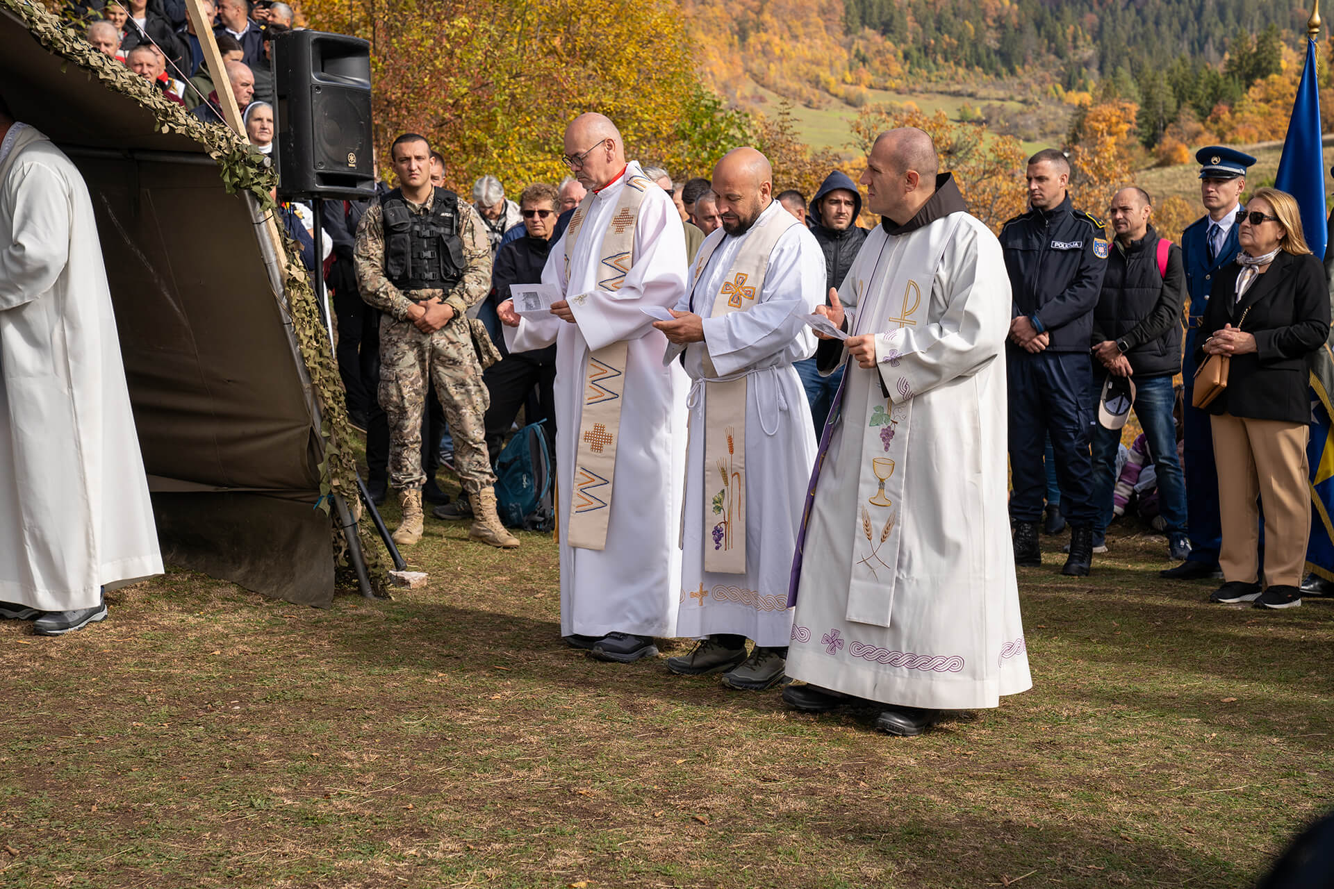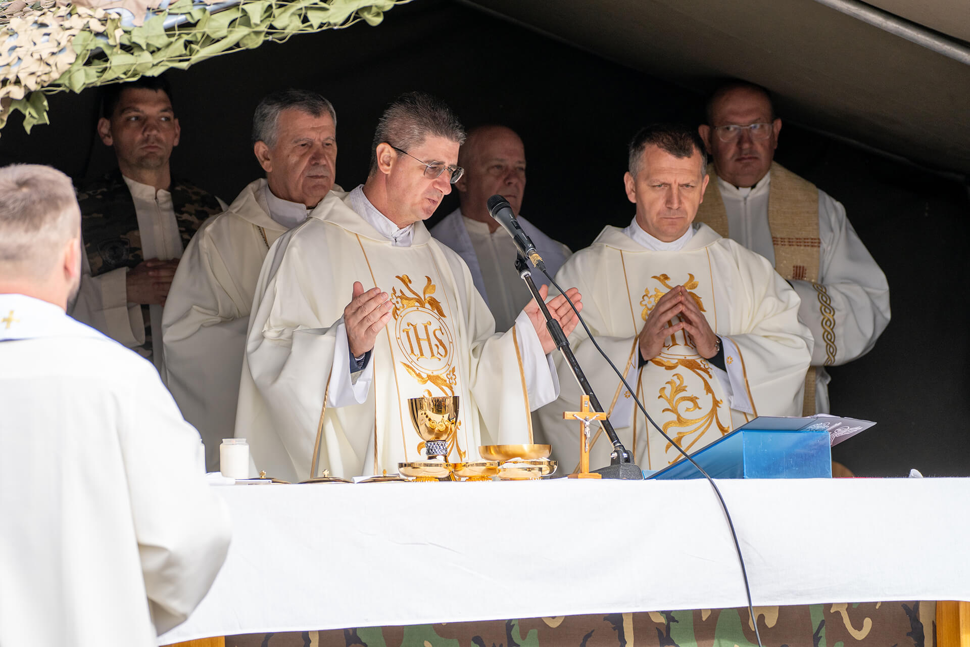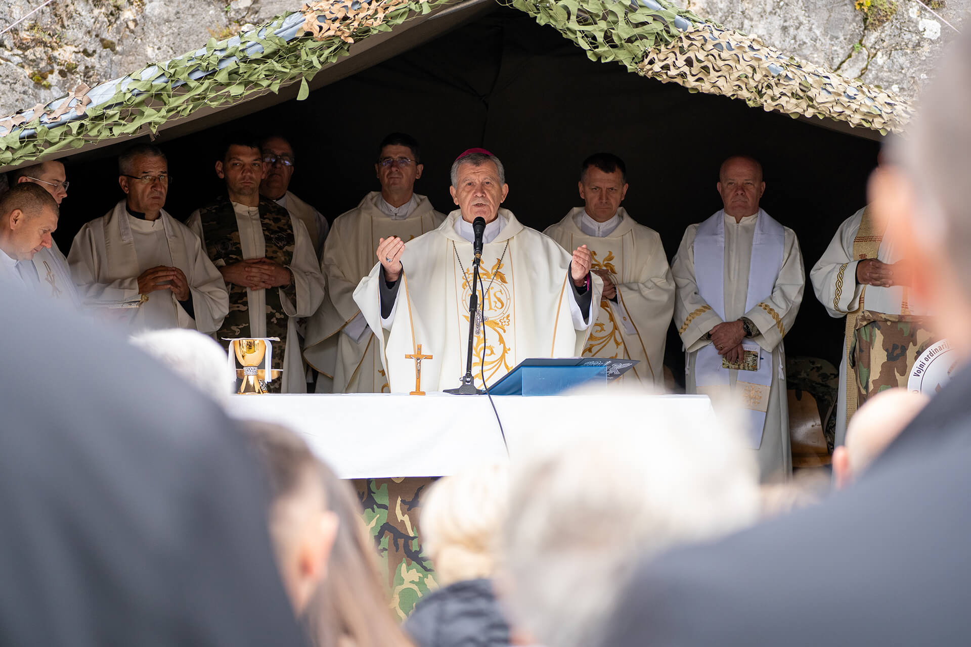 The Holy Mass celebration in Bobovac, which is located in the parish of Kraljeva Sutjeska, was led by the Archbishop of Vrhbosna, Metropolitan and Apostolic Administrator of the Military Ordinariate in BiH, Msgr. Tomo Vukšić. About 20 priests concelebrated, including the vicars general of the Archdiocese of Vrhbosna, Msgr. Slađan Ćosić, the Military Ordinariate in BiH, Msgr. Željko Čuturić, and the Military Ordinariate of the Republic of Croatia, Msgr. Ilija Jakovljević.