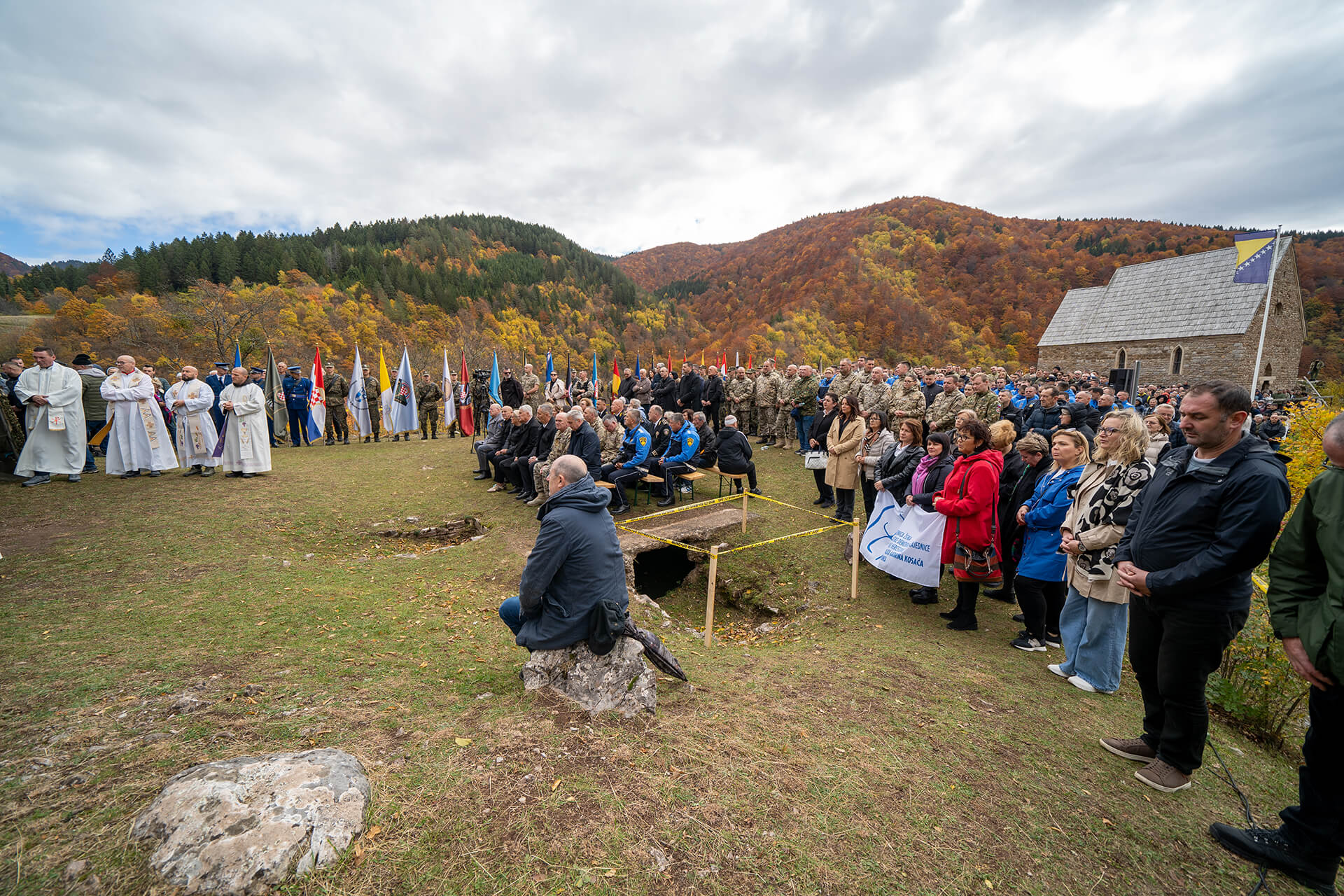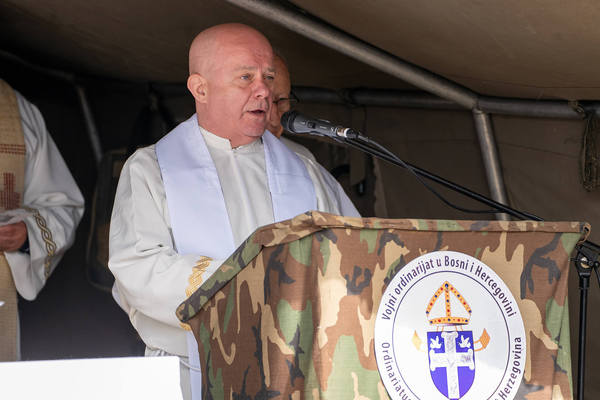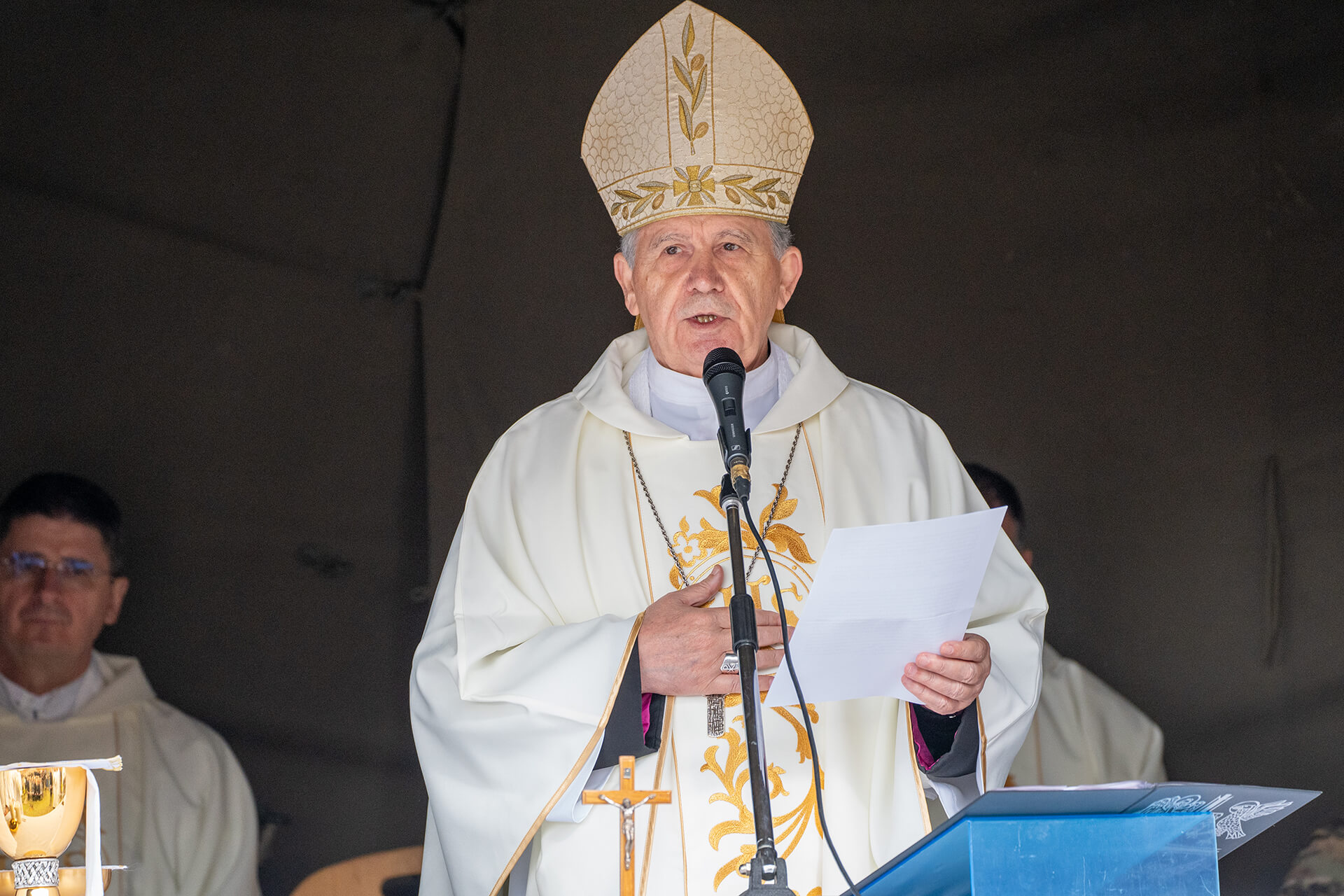 The Holy Mass celebration in Bobovac, which is located in the parish of Kraljeva Sutjeska, was led by the Archbishop of Vrhbosna, Metropolitan and Apostolic Administrator of the Military Ordinariate in BiH, Msgr. Tomo Vukšić. About 20 priests concelebrated, including the vicars general of the Archdiocese of Vrhbosna, Msgr. Slađan Ćosić, the Military Ordinariate in BiH, Msgr. Željko Čuturić, and the Military Ordinariate of the Republic of Croatia, Msgr. Ilija Jakovljević.