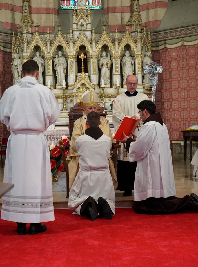 After the candidates for the diaconate were presented: for the Archdiocese of Vrhbosna, a member of the Neocatechumenal Way, Marko Tunjić, and for the Franciscan Province of Bosna Srebrena, OFM Robert Bašić, the Archbishop of Vrhbosna delivered an appropriate homily.