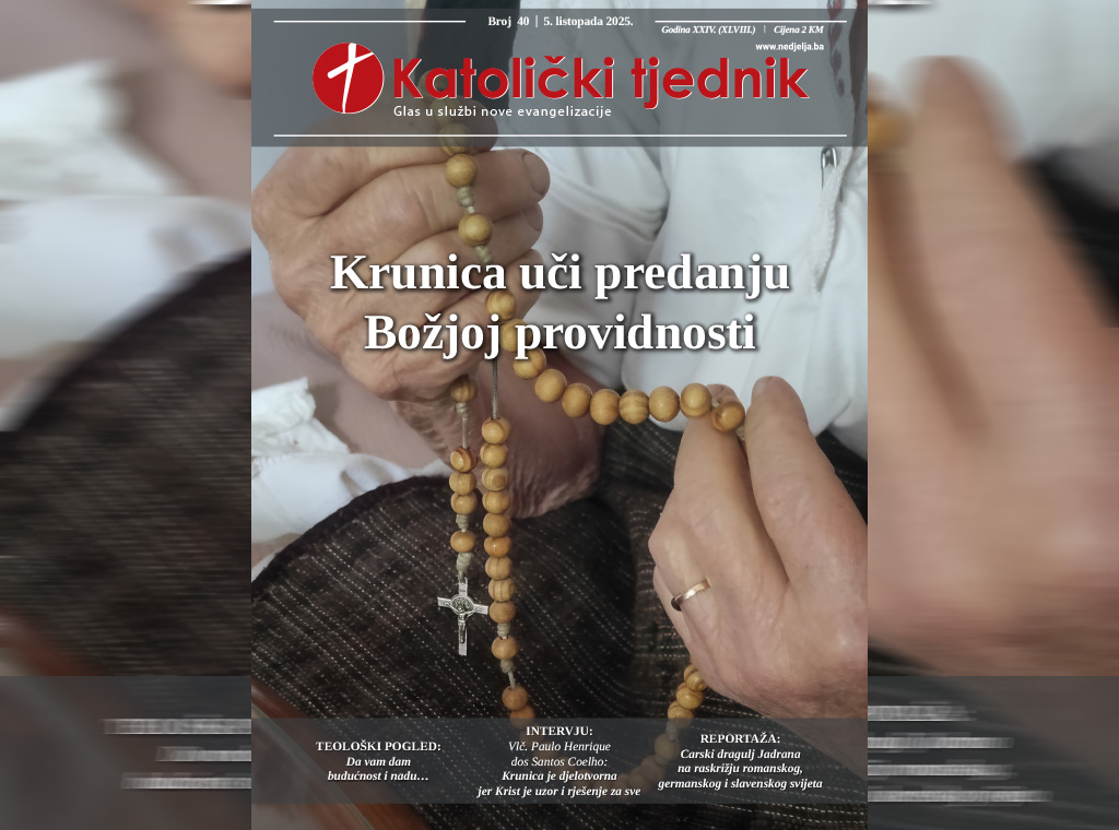 Iz tiska je izišao 40. broj Katoličkog tjednika čija je središnja tema krunica, a donosi i niz drugih zanimljivih tekstova kao i standardnih priloga.