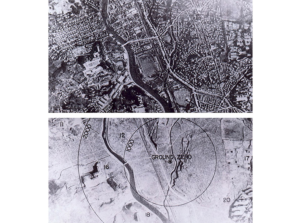 Zrakoplovni snimak Nagasakija prije i nakon bacanja bombe