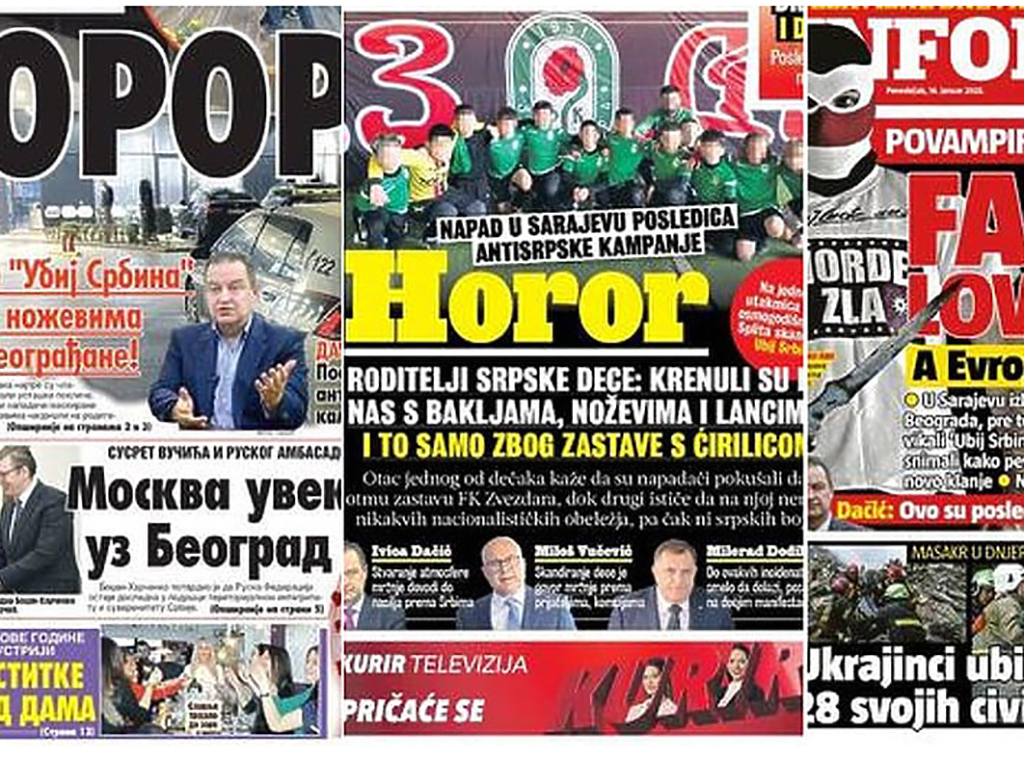 Bitno je, međutim, da je policija, ipak, brzo reagirala te uhitila neustrašive navijače Sarajeva, koji su, pokazat će istraga, prije juriša na zastavu napadnutima pošteno priznali: „Samo smo vas čekali!“ Srbe, biva! Jasno, mediji u Srbiji, ali, dakako, i oni u Republici Srpskoj nisu propustili prigodu obračunati se s „malim Teheranom“. S naslovnica tabloida pod nadzorom Aleksandra Vučića vrištali su naslovi: Fašisti love Srbe, a Europa šuti i gleda; Horor, napad u Sarajevu posljedica antisrpske kampanje; Linčovali srpsku decu; Napad na Srbe gdje god žive…