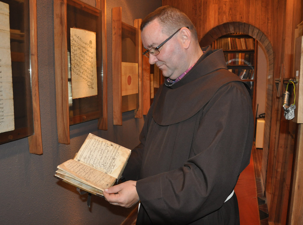Moram spomenuti podatak da je 1658. veliki požar zahvatio ovo krilo samostana kada je stradalo dosta te knjižnične i arhivske građe, ali uspjelo se nešto sačuvati i nakon toga prikupiti još građe. Sve knjige su, kako vidite, vrlo stare. Nalaze se pod zaštitom države, i cijeli samostan kao nacionalni spomenik kulture BiH. Međutim, posebno trebamo izdvojiti dvije skupine među ovim knjigama. Prvu i najvrjedniju skupinu sačinjavaju inkunabule – prve knjige tiskane do 1500. Kažu da njih u svijetu postoji oko 400 000, kod nas u BiH ima ih svega 53, a 31 se nalazi u našoj knjižnici. Druga vrijedna skupina koju nazivamo franciskali zapravo su djela poznatih bosanskih franjevaca koji su bili pisci, počevši od fra Matije Divkovića, koji se smatra začetnikom bosanske književnosti, pa sve do fra Martina Nedića iz 19. st.“, iscrpno je objasnio župnik Brkić