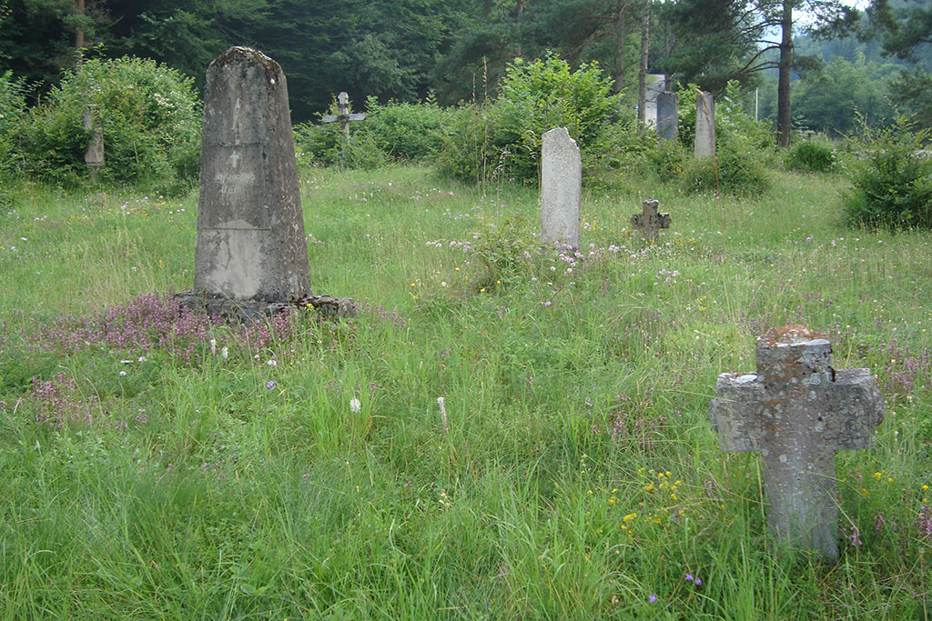 groblja – u Prači i u Podgrabu/Sjetlini. Dok je za katoličko groblje na ulazu u Praču, iz pravca Goražda, udomaćen naziv Švapsko groblje, za ono u Podgrabu u literaturi se koristi naziv Češko groblje, iako ga mještani nazivaju isključivo katoličkim grobljem.