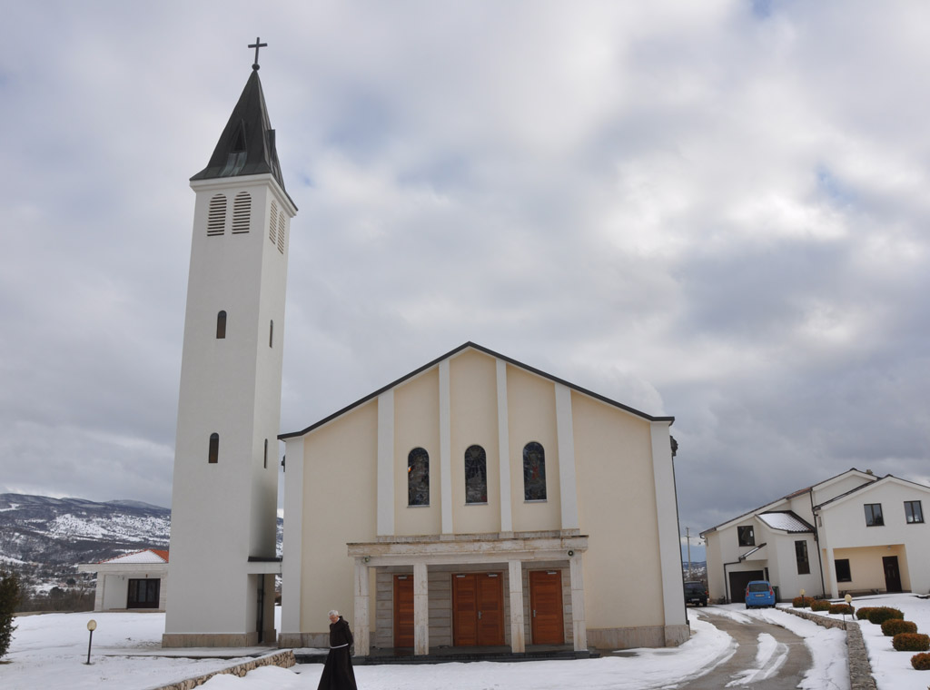Kako je u zimsko vrijeme kratak dan morali smo se brzo rastati. Pozdravljajući se s fra Marinkom izvan dvorišta, djelomično zatrpanim snijegom, vidjeli smo spomenik ubijenim župljanima tijekom ratova.