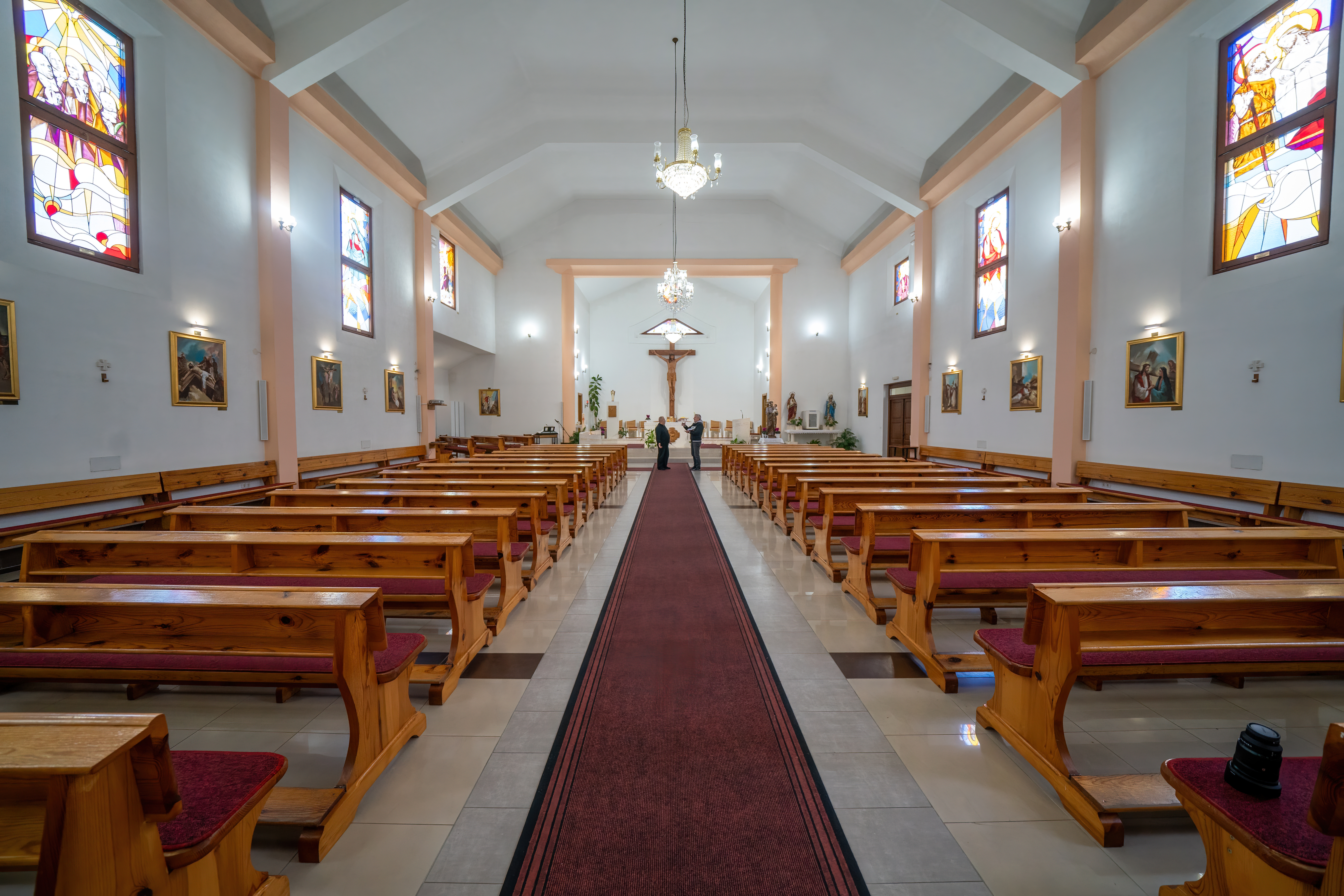 A ovdašnja župna crkva, koja već izvana impresionira svojom veličinom, uistinu je prostrana i svijetla, tako da umjetnine dolaze do izražaja u svome punom sjaju. Poglavito oltar, djelo akademskog kipara Ilije Skočibušića kojega je likovna kritika poodavno promovirala u Meštrovićeva nasljednika, a on to svojim djelima neumorno i potvrđuje. Oltar resi i veliko, osam metara visoko raspelo od hrastovine, rad Marije Rizvić iz Orubice kod Davora. Križni put, vitraji hrvatskih blaženika te simbol Duha Svetoga izradio je akademski slikar Novotravničanin Anto Mamuša. I dok se divimo onomu što vidimo, don Miljenko najavljuje, kako bi, veli, slika bila kompletna, i novu fasadu koja bi trebala biti gotova ove godine. Nema dvojbe da će tako i biti jer iduće se godine obilježava 90. obljetnica župe.