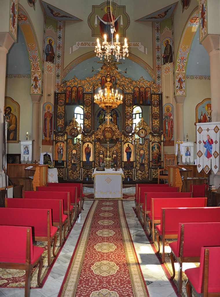 Ova crkva, kao i svaka istočna, ima tri dijela. Priprat – odnosno ulaz u sam hram, središnji dio koji se zove lađa hrama i sam oltar – svetište. Iznimno je bogata detaljima, jer kako kaže naš sugovornik – ljudi mogu na više načina molit: srcem, ustima, očima, sluhom... „Pa jedan od načina kako se narod moli jest upravo kada dođe u crkvu gledajući u ikone, na te ljude koji su izobraženi na njima oni zapravo promišljaju o njihovim životima i trude se da na što više načina svoj život približe životu tih svetaca u koje gledaju“, dočarao nam je o. Orel objasnivši kako je ikonostas zapravo konstrukcija koja dijeli oltar od lađe hrama. „Zove se tako jer je na njoj puno ikona, a najvažnije koje se na njoj nalaze su: Isus Krist i Presveta Bogorodica. Na njemu su troja vrata – dvoja đakonska kroz koja mogu prolaziti samo đakoni i carska vrata kroz koja za vrijeme bogosluženja mogu prolaziti samo svećenici“, dodao je te nam dopustio da i sami prođemo kroz đakonska vrata i fotografiramo oltar, što je za nas bilo jedinstveno iskustvo.