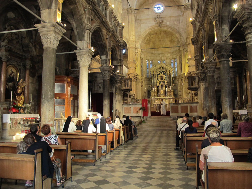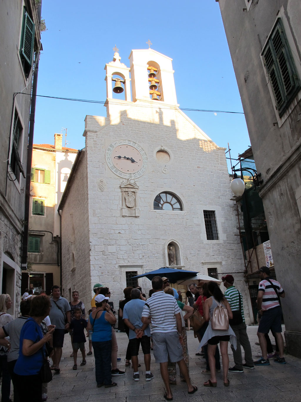 U tom impozantnom sakralnom zdanju upoznali smo ljetos katedralnog župnika don Krešimira Matešu koji nas je proveo kroz višestoljetni hod najstarije šibenske župe – župe Sv. Jakova koja je na Božić 2016. obilježila 950 godina postojanja – kao sigurna godina njezina osnutka uzima se godina prvog spomena grada Šibenika.