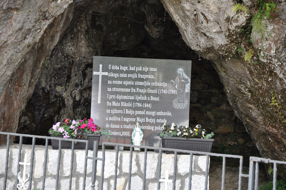 Svetište u narodu "Pod špiljom" utemeljeno je u drugoj polovici 18. st. u vrijeme kad je Kreševom, a i širom okolinom, harala kuga. U špilji su dvojica kreševskih fratara, fra Franjo Gracić i fra Mato Nikolić, liječili oboljele od te opasne bolesti. To je bilo doba kad je fratar bio sve narodu pa i liječnik.