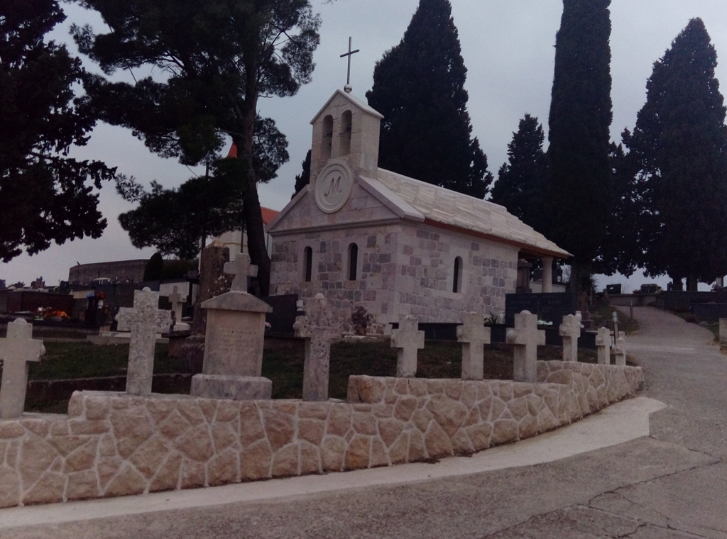 Mještani se pokapaju u groblje rasprostranjeno oko župne crkve, a uz njega se nalazi i mrtvačnica. Župnik nam objašnjava da su se vjernici pokapali onako kako je teren dozvoljavao, a vodi nas i do svećeničke grobnice. Tu počivaju trojica svećenika koji su preminuli u Gabeli: don Luka Šimunović iz Stona (ubijen 1659.), don Jure Sentić iz Graca (+1696.) i don Martin Krešić iz Hrasna (ubijen +1945).