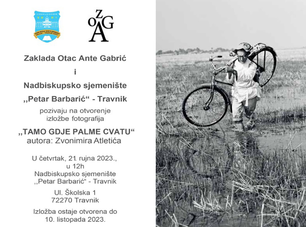 Zaklada "Otac Ante Gabrić" i Nadbiskupsko sjemenište "Petar Barbarić" u Travniku, organiziraju izložbu fotografija "Tamo gdje palme cvatu" autora Zvonimira Atletića.