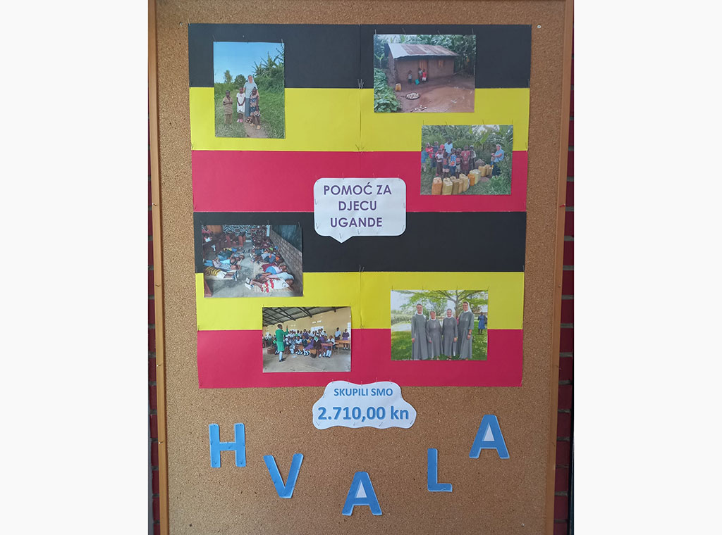U dogovoru s ravnateljicom škole, vjeroučiteljice su na satovima vjeronauka sa svojim vjeroučenicima skupljali dobrovoljne priloge za školovanje djece u Ugandi, točnije u misijskoj postaji Rwentobo koju vode Školske sestre franjevke Krista Kralja Bosansko-hrvatske provincije Prečistog Srca Marijina: s. Ivka Lučić, s. Elizabeta Žuljević i s. Kata Karadža, te s. Urša Mrinčič iz Mariborske provincije Bezgrešnog začeća.
