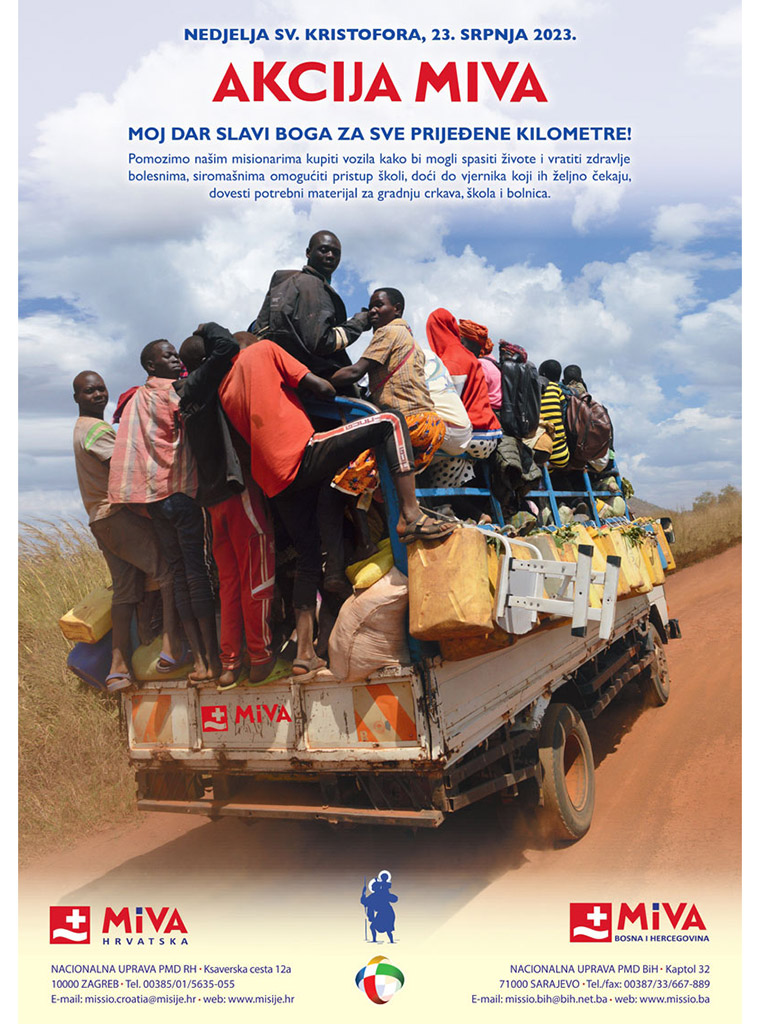 U prigodi misijske akcije MIVA 2023. koja je vezana uz spomendan Sv. Kristofora 25. srpnja, zaštitnika putnika, vozača, pomoraca, nacionalni ravnatelj Papinskih misijskih djela BiH mons. Luka Tunjić poslao je dopis bh. župnicima.