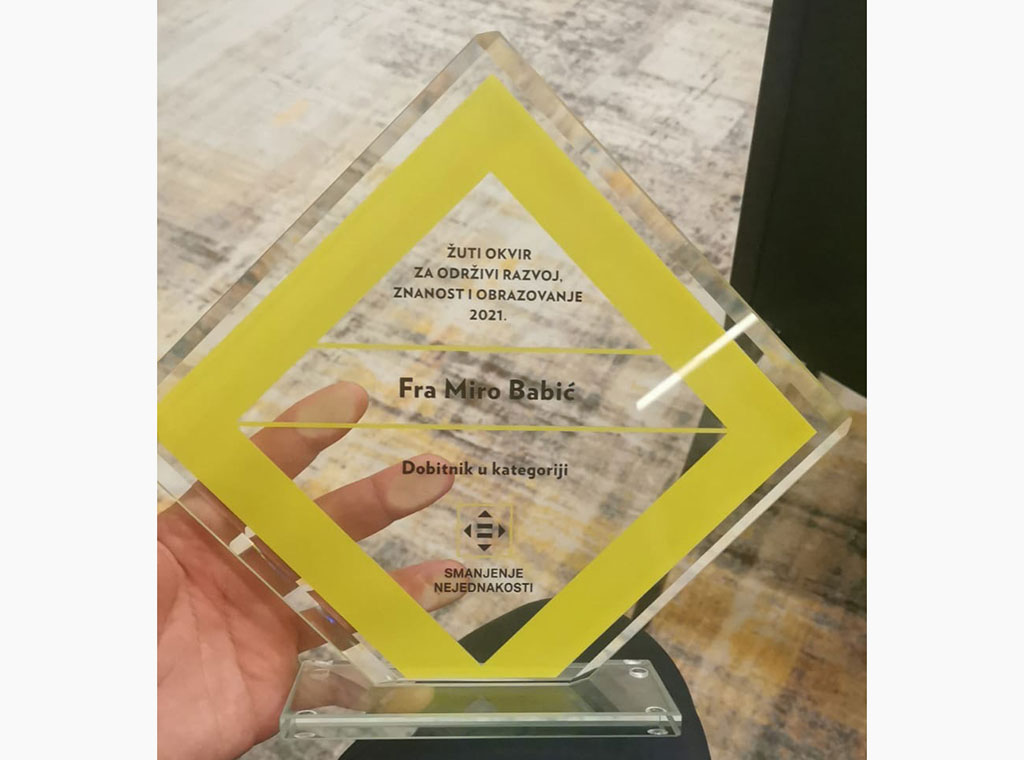 Fra Miro Babić, franjevac Bosne Srebrene, dugogodišnji misionar u Keniji dobitnik je nagrade „Žuti okvir“ za održivi razvoj, znanost i obrazovanje koju dodjeljuje National Geographic Magazine Croatia.