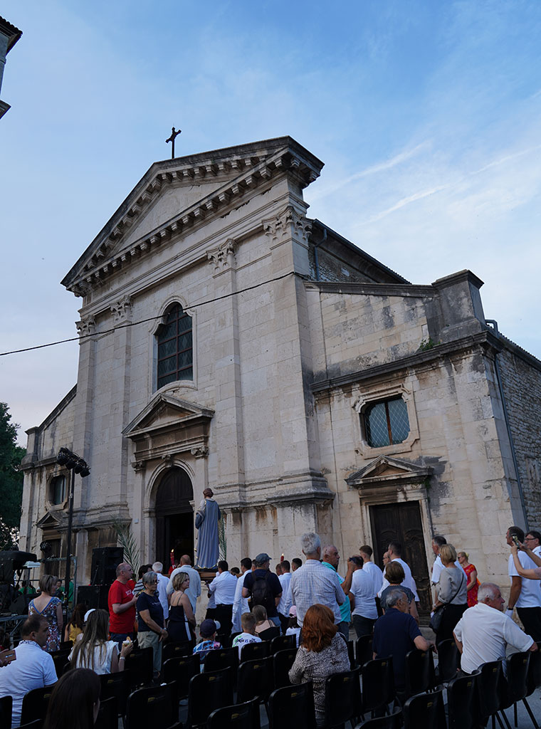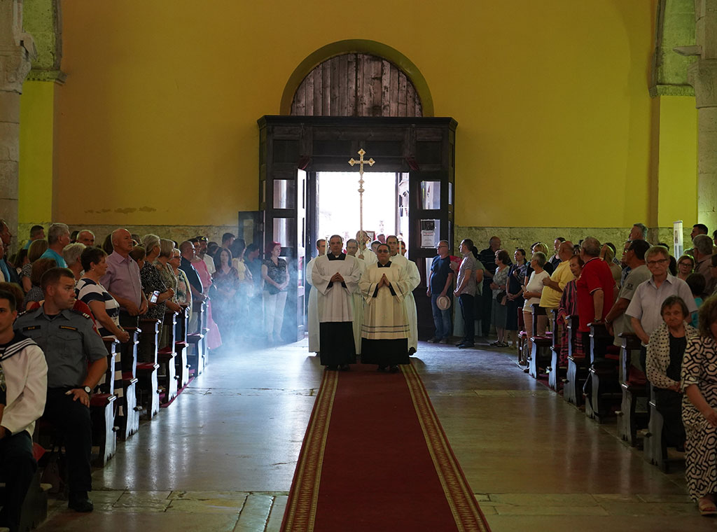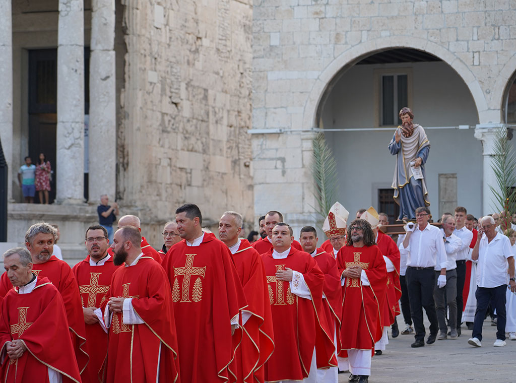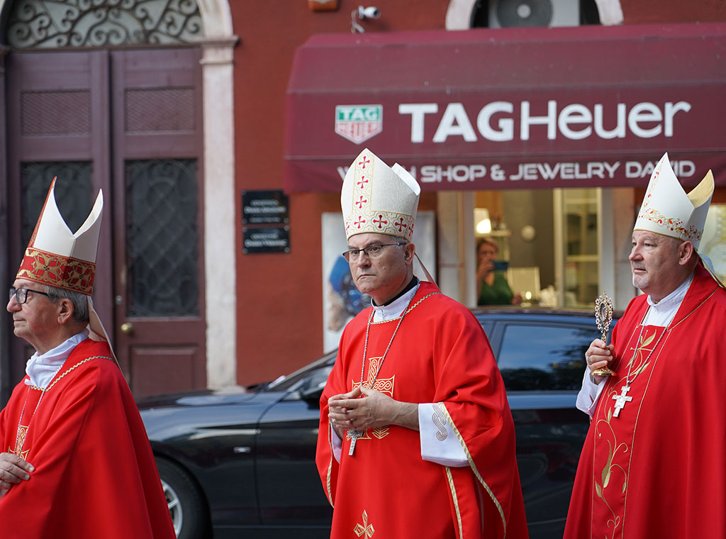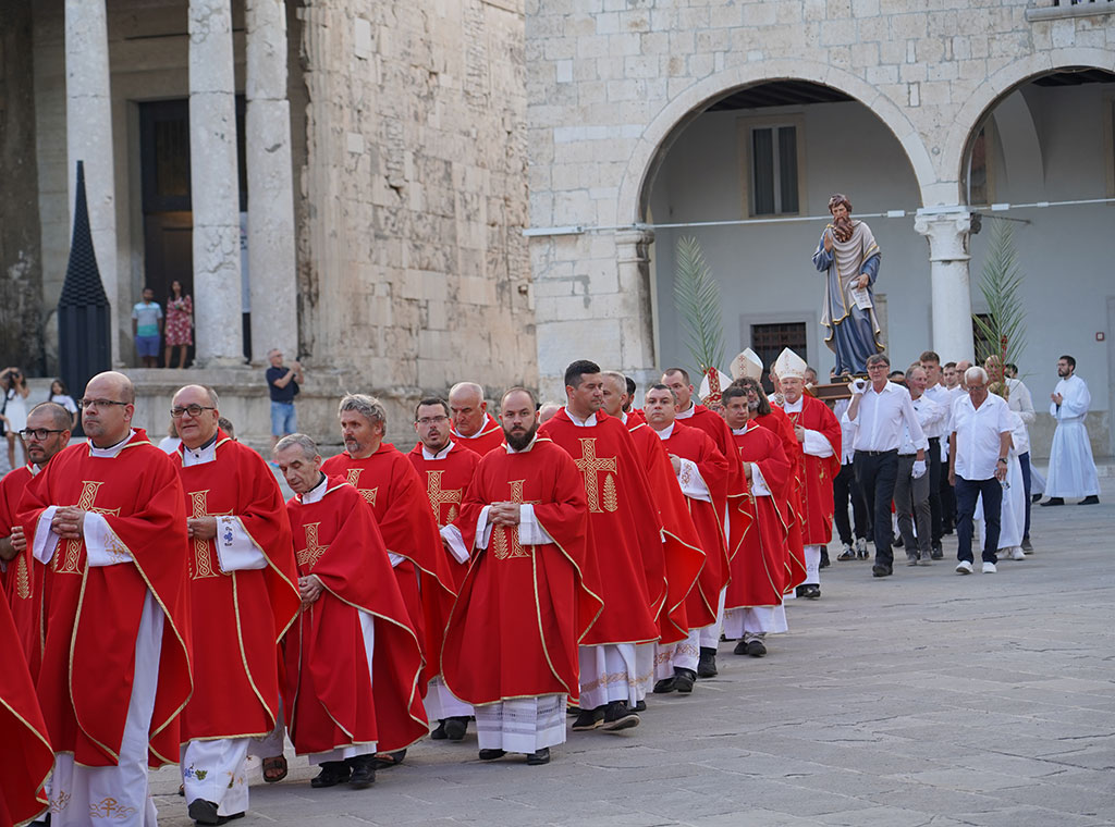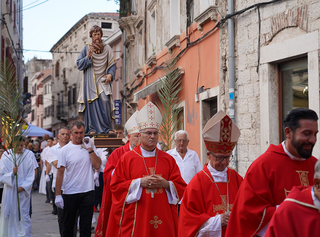 Poslije svečanog procesijskog ulaska u velebnu pulsku katedralu koju posebno resi i daje joj dozu mističnosti „lebdeće“ raspelo, biskup Štironja se također pridružio riječima pozdrava i dobrodošlice, te vjernicima grada Pule i Pulske biskupije čestitao blagdan Sv. Tome.