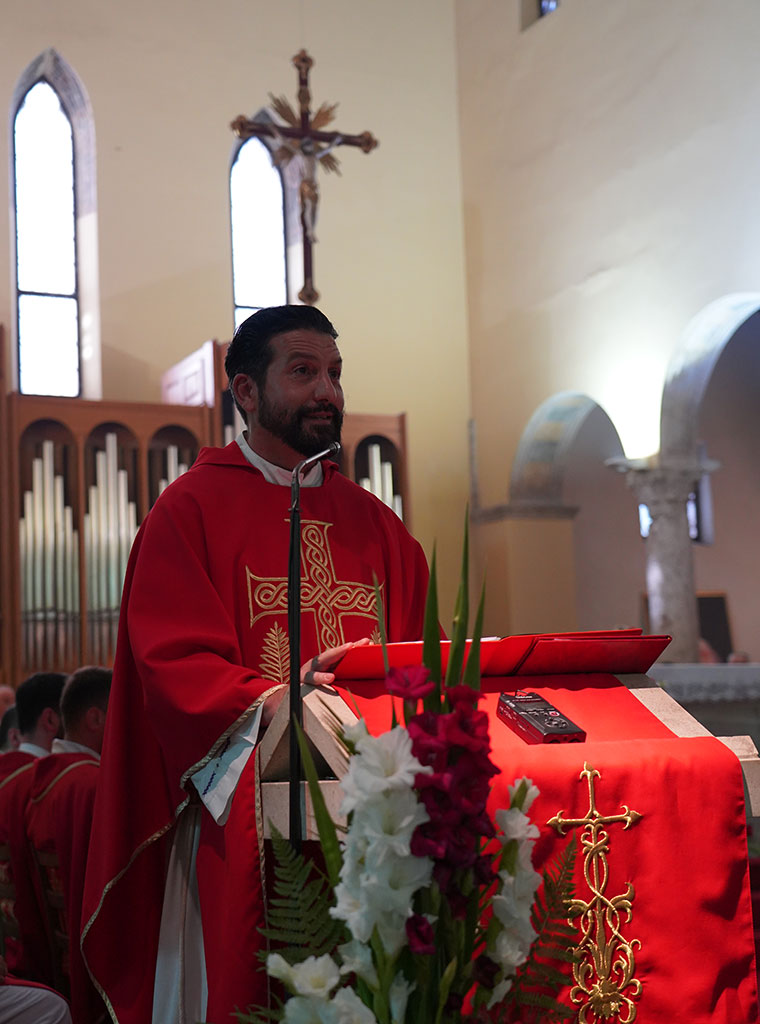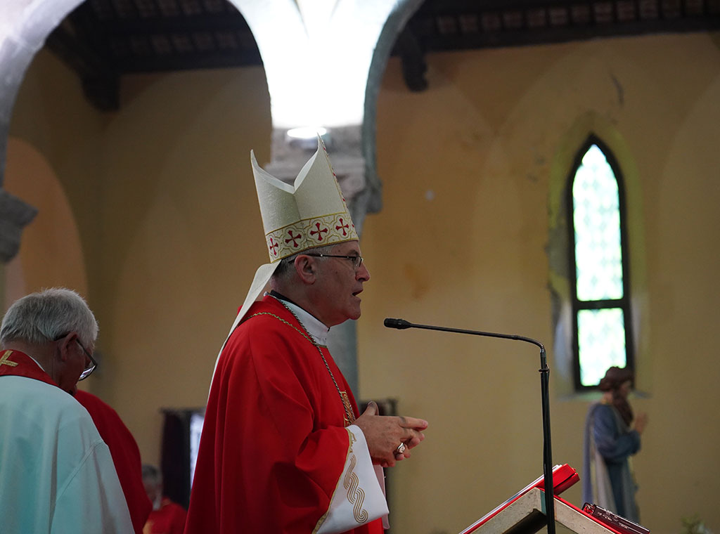 Nakon dvojezičnih svetopisamskih čitanja na talijanskom i hrvatskom jeziku i naviještenoga Evanđelja, krčki je biskup na početku propovijedi kazao kako će uz njega, tijekom ove homilije, nešto reći i dvoje misionara, jer je to jedinstvena prilika.