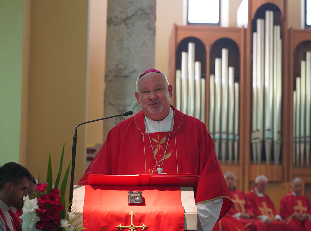 „Evanđelje koje smo čuli – nije nepoznato. Čitamo ga svake godine u vazmeno vrijeme i pitamo se – što je to spriječilo Tomu apostola da ne bude s ostalima kad je Isus uskrsnuo i došao među svoje učenike?! (...) Kako god bilo, kada su mu ovi prenijeli svoje iskustvo da su vidjeli Uskrsnuloga, on je rekao 'neću vjerovati dok se sam ne uvjerim'. Zašto je Toma sebe proglasio ateistom?! Je li to bilo njegovo čvrsto uvjerenje ili ga je to kopkalo pa si je govorio 'koja sam ja budala, što me je to spriječilo, koji je to posao bio važniji od svega drugoga da nisam bio zajedno sa svojima. To bismo mi voljeli znati – ali ne znamo. Činjenica je da je on rekao 'dok ja ne stavim svoje ruke i ne provjerim mjesto Isusovih ožiljaka od čavala i križa, neću vjerovati'. I nakon osam dana Isus dolazi ponovno, isti pozdrav – mir vama, i interesantno: kao da drugi apostoli ni ne postoje, Isus se direktno obraća Tomi i poziva ga neka se uvjeri, neka provjeri je li to Isus Nazarećanin, koji je bio razapet, a koji je sada uskrsnuo. I čak i neki crkveni oci govore – i Toma je dotaknuo i povjerovao. Nije istina, bar to Evanđelje ne kaže. Evanđelje nigdje ne kaže da je Toma dotaknuo, nego kad je čuo Isusov glas, rekao je: 'Gospodin moj, i Bog moj'. U cijelom Svetom pismu ne postoji svečanija izjava u vjerovanje u uskrsnuloga Gospodina, od ove Tome apostola“, kazao je, među ostalim biskup Petanjak. On je zatim za ambon pozvao najprije p. Milana Knezovića, verbita, misionara u Brazilu da predstavi misionarski poziv, a potom i s. Mariju Luciju Vincek, karmelićanku, misionarku u Nigeriji.