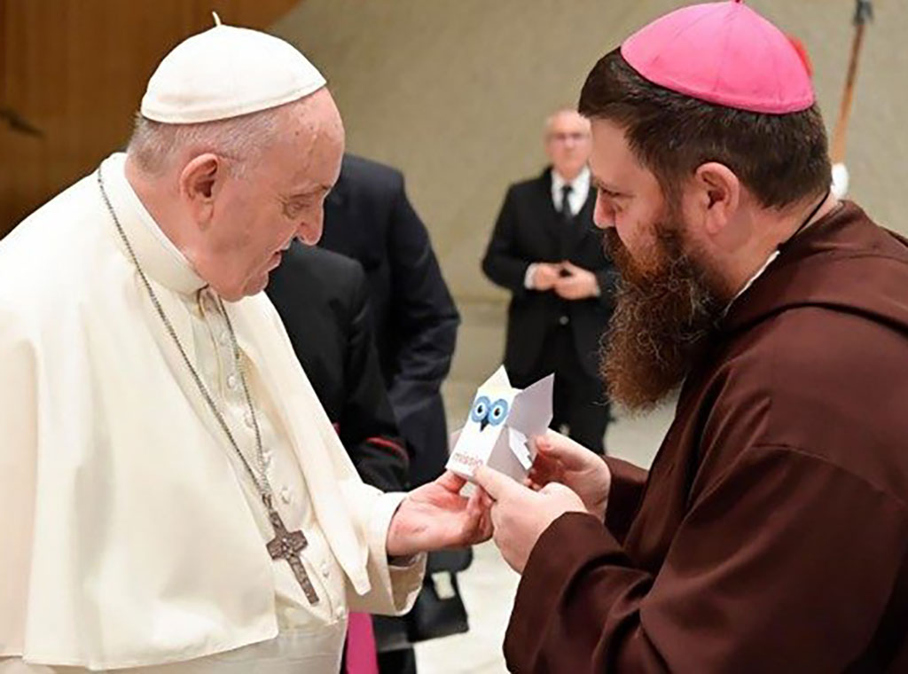 Biskup Reykjavika mons. Dávid Bartimej Tencer uručio je papi Franji na općoj audijenciji u srijedu, 10. studenoga, neobičnu i zanimljivu misijsku kasicu u obliku sove koju je dizajnirao Ivan Sović, ravnatelj Papinskih misijskih djela (PMD) za pet nordijskih zemalja.