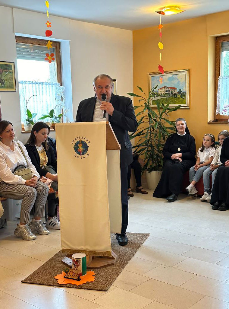 Spomenula je kako su "ovakvu vatru i žar Isusove ljubavi u srcu" osjetile prije 10 godina s. Liberija i s. Ana. "Kao plod njihova radosnog i sretnog desetogodišnjeg služenja Malome Isusu, naša Družba i Provincija u zajedništvu s mnogim dobročiniteljima među kojima ste i vi danas ovdje nazočni, odlučila je podržati ih u želji u kojoj želimo iščitati Božju volju, da na području u kojem služe sagradimo zajedno Kuću za Maloga Isusa pod čijim će krovom naći smještaj i sestre jer su i one već deset godina bez svog kako mi to kažemo “krova nad glavom“ tako i mnoga djeca potrebna skloništa, sigurnosti i Isusove ljubavi koju će im pružati sestre i tako svjedočiti da ih Isus ljubi i brine za njih", objasnila je provincijska glavarica zahvalivši na podršci i pomoći.