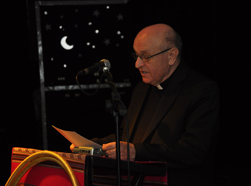 Zatim su na pozornicu izišli mladi gosti iz vrlo misijski aktivne župe Sv. Mihovila u Drinovcima Andrea i Filip Pandžić koji su mu predali umjetničku sliku, rad nepoznatog umjetnika iz Demokratske Republike Kongo, kao zahvalu za suradnju i pomoć Radosnoj vijesti i misijama, koju je pokazao kroz 31 godinu kao vrhbosanski nadbiskup.