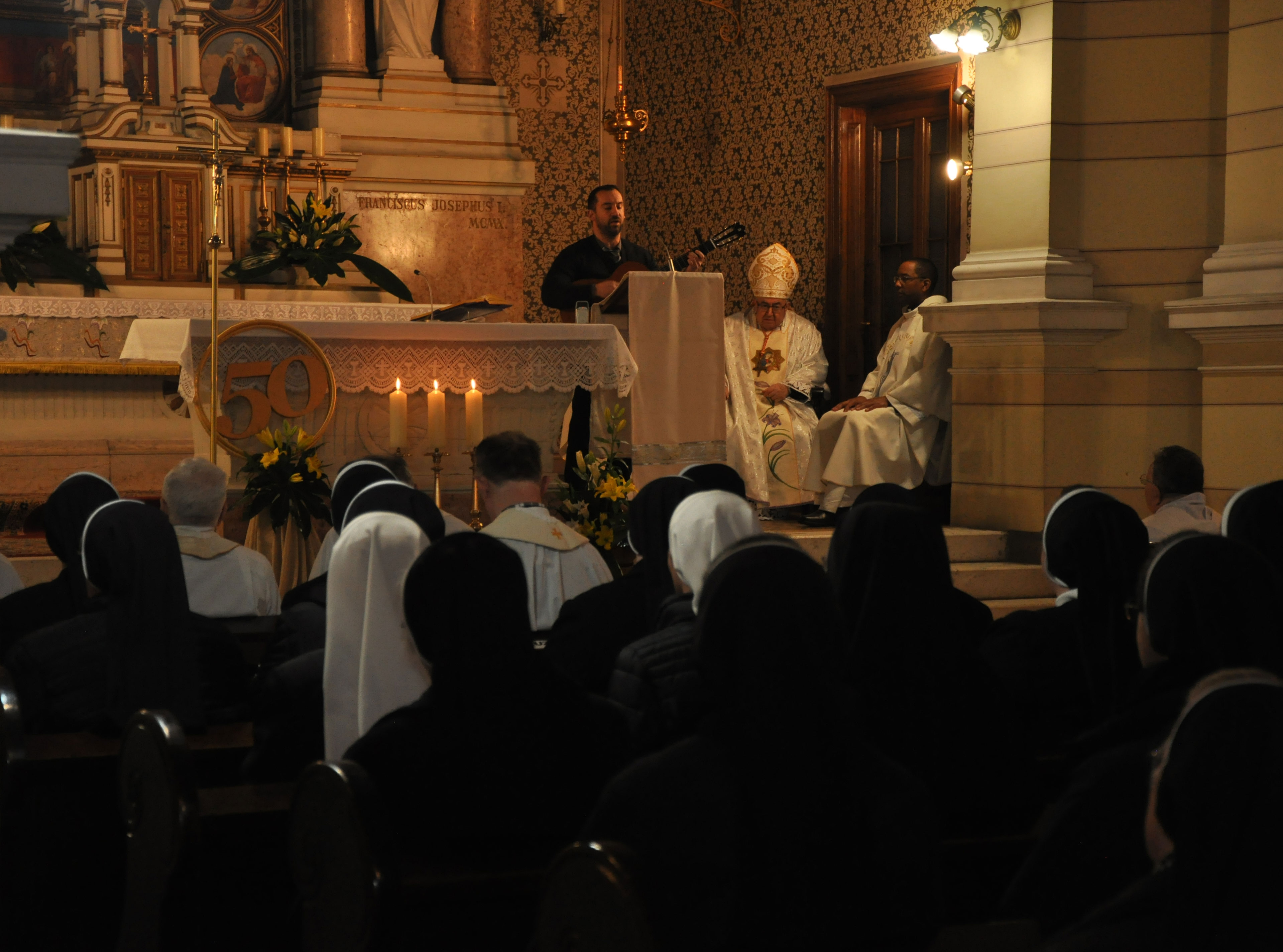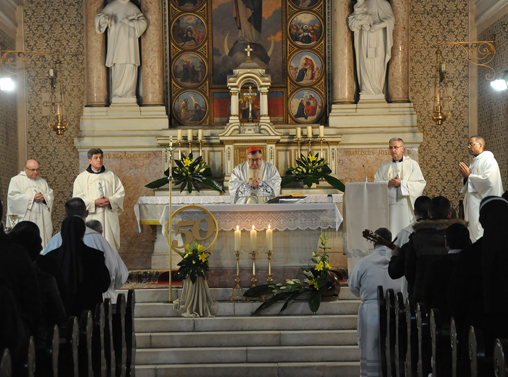 Okupljenima je pozdrav na početku uputio mons. Luka, kazavši kako je euharistija po svojoj naravi zahvala uskrslom Gospodinu za trajnu prisutnost u Njegovoj riječi i u prilikama kruha i vina. „Pozivam vas da ovoj misnoj zahvali pridružimo i naše zahvale za sve pokojne i žive koji su, na bilo koji način tijekom ovih 50 godina, pomagali u oblikovanju i izlaženju našeg slavljenika misijskog lista Radosna vijest“, kazao je, među ostalim.