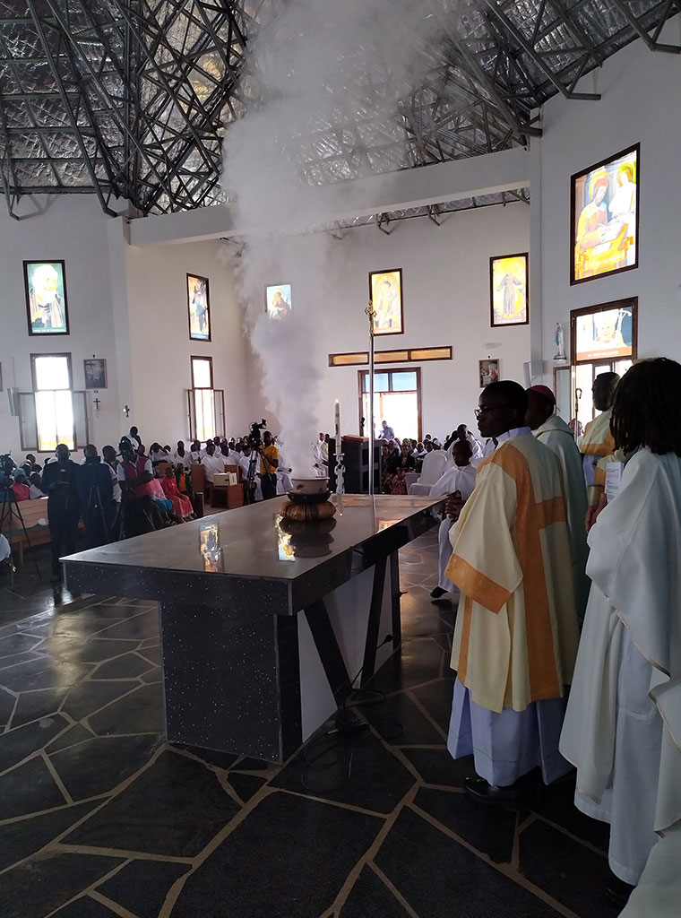 Oltar i crkvu posvetio je i misu predvodio nadbiskup Isaak Amani, te istog dana blagoslovio i špilju Gospe Lurdske u crkvenom dvorištu.