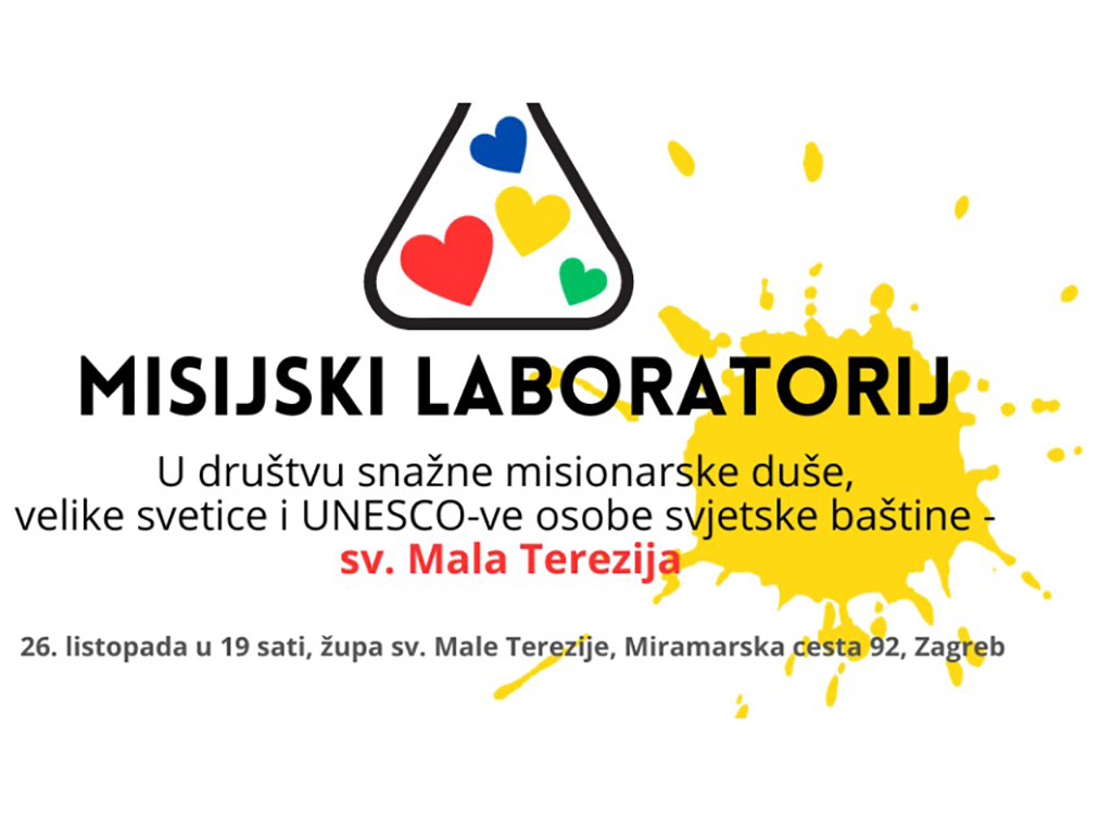 Misijski laboratorij održat će se Župi Sv. Male Terezije u Zagrebu (Miramarska 92) s početkom u 19h, a prethodno će u 18:30h biti slavljena sv. misa koju će predvoditi upravitelj župe vlč. Mario Pavić.