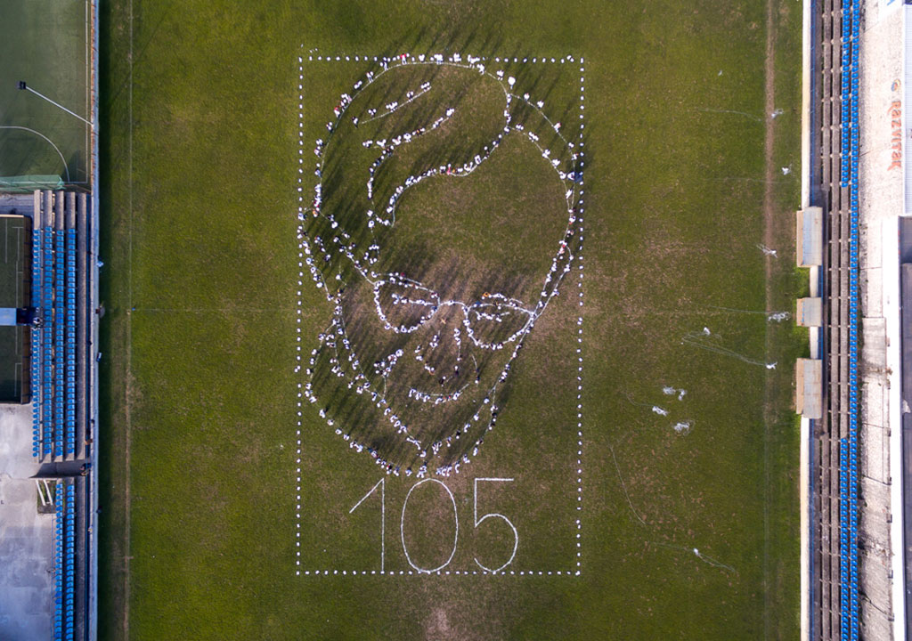 Učenici i nastavnici Srednje škole Metković su u suradnji s fotografom Marinom Verajom na nogometnom igralištu NK Neretva napravili milenijsku fotografiju oca Ante Gabrića, misionara koji se prije 105 godina rodio u Metkoviću.