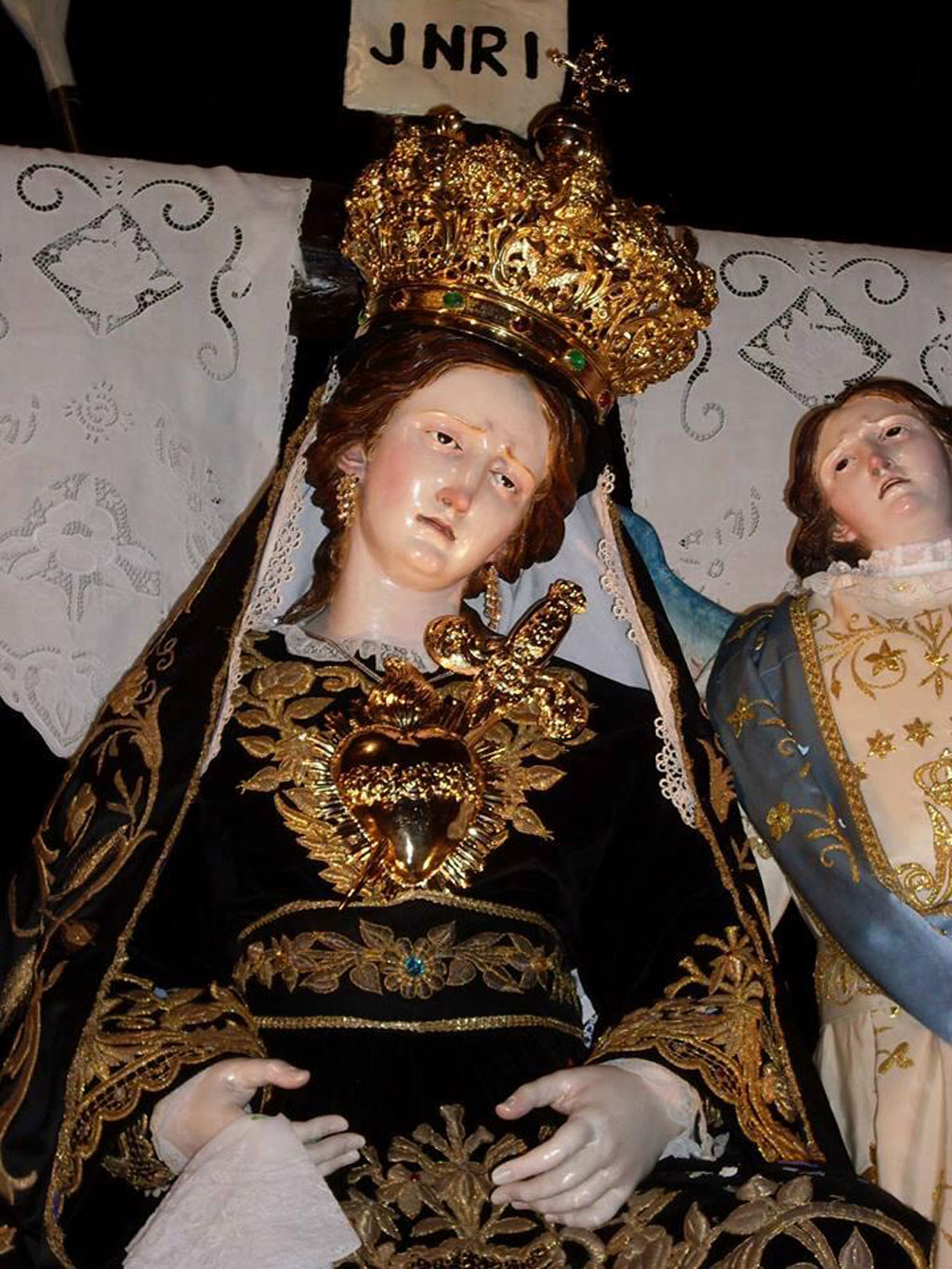 Po završetku crkve i kuće o. Gaetano naručio je od poznatog napuljskog kipara Francesca Verzelle da izradi lik Gospe Žalosne. Upućeni kažu da je čuveni umjetnik svoje djelo morao ponoviti nekoliko puta. Vizija tuge na njezinu licu bila je jasna slika u mislima o. Gaetana, a najzad ju je i kipar uspio dočarati pa je svećenik rekao: „To je to!“