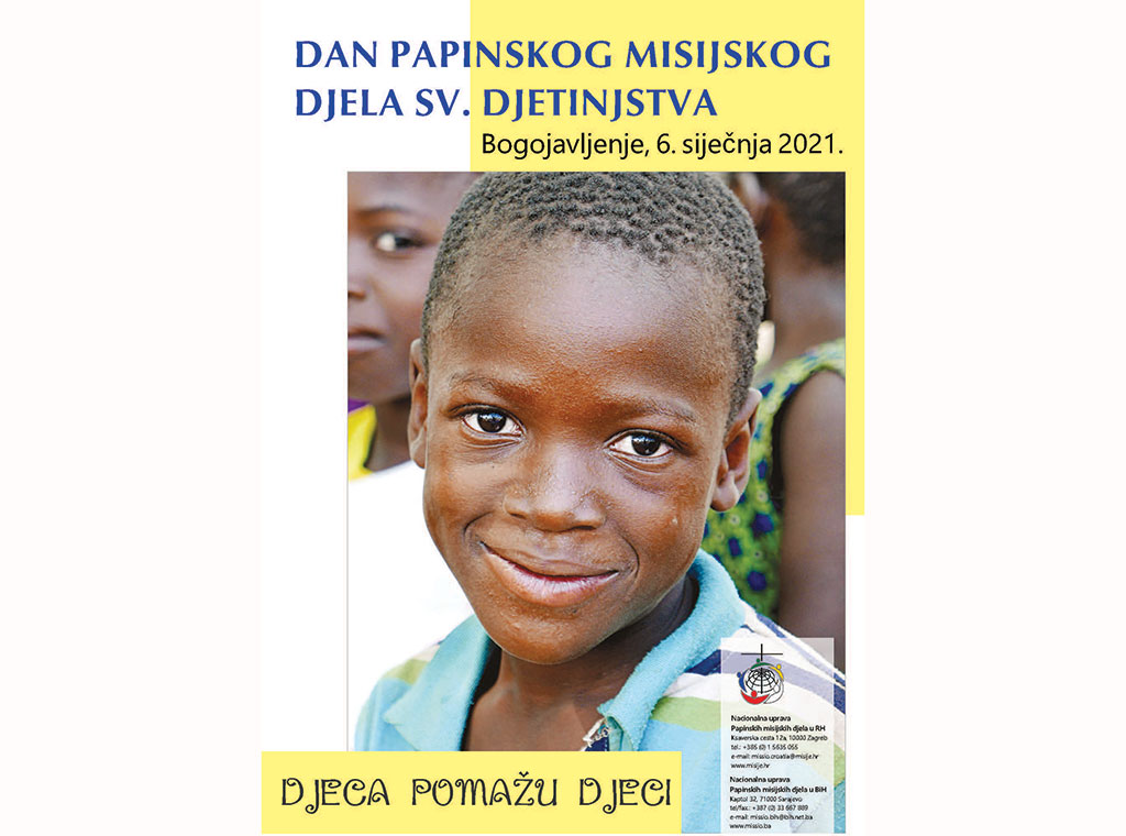Ove godine predstavljamo vam misijsku zemlju Ganu. S dječakom iz Gane, naša djeca i učenici mogu se pripravljati kroz adventsko vrijeme za radosnu svetkovinu Božića i Bogojavljenje. Materijali su bogati raznovrsnim sadržajima, kako za djecu tako i za odrasle. Molim vas nađite načina da ove poruke dopru do dječjih srdaca kako bi se mogli što bolje pripraviti i pomoći svojim vršnjacima u misijskim zemljama. Geslo Djela svetog Djetinjstava je Djeca pomažu djeci. Tijekom povijesti ove misijske akcije urodile su gradnjom tisuća škola, sirotišta i bolnica te omogućile redovno školovanje milijunima djece. Pomagati svojim vršnjacima u misijama znači biti s njima duhovno povezan u molitvi ali i materijalno im pomagati.