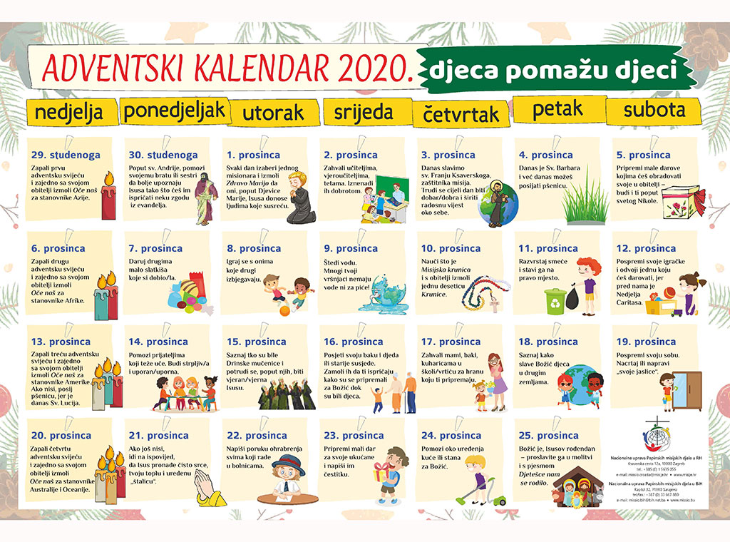 Adventski kalendar može pomoći u pripravi ne samo djeci nego i svim članovima obitelji. Bogojavljenska kolekta je naša izravna pomoć u evangelizaciji djece i cijeloga svijeta.