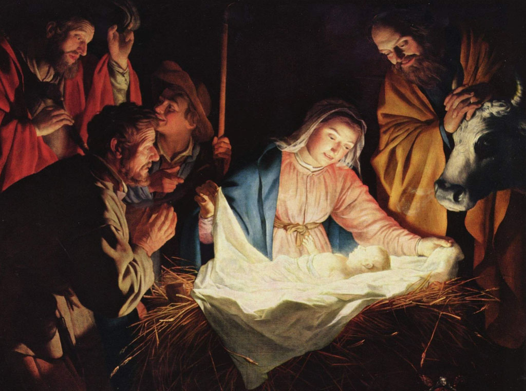 „Kad mu Marija reče da se bliži Njezino vrijeme, neka se počne moliti, on je ostavi i otiđe u svoju spavaonicu da se pomoli. Prije nego uđe u svoju izbu, još se jednom osvrne na pozadinu špilje, gdje je Marija okrenuta leđima od njega, klečući molila na svojem ležaju, okrenuvši lice prema istoku. On vidje špilju ispunjenu svjetlošću. Marija bijaše okružena plamenom. Ja vidjeh da se sjaj oko Marije stalno povećava. Svjetla, koja bijaše upalio Josip, više se nisu vidjela. Marija klečaše u prostranoj bijeloj halji koja bijaše raširena pred njom. U dvanaestom satu bijaše duboko u molitvi. Vidjeh da je podignuta sa zemlje, tako da se vidjelo tlo ispod nje. Ona je prekrižila ruke ispred prsa. Sjaj se oko nje proširi. Strop špilje ne vidjeh više. Bijaše kao neka cesta od svjetla iznad nje sve gore do neba, u kojoj jedno svjetlo prožimaše drugo, i jedna prilika drugu, a krugovi svjetla prelažahu u nebeske likove. Marija je, međutim, molila gledajući u zemlju. Tad rodi Dijete Isusa. Ja ga ugledah kao blistajuće, sasvim maleno dijete, što bijaše svjetlije nego drugi sjaj, kako leži na prostirci ispred njezinih koljena…. Bijaše zacijelo sat nakon porođaja kad Marija pozove Svetog Josipa koji još uvijek bijaše u molitvi. Kad joj se približi, u pobožnosti, veselju i poniznosti baci se ničice, a Marija ga opet zamoli da pogleda sveti dar neba. Tad on uze Isusa na ruke… Potom ga (Marija) položi u jasle, što bijahu ispunjene rogozom i drugim mirisnim biljem, iznad kojih bijaše prostrt pokrivač, koji je visio sa strana….“