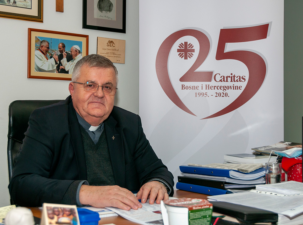 Nakon mons. Miljenka Aničića (30.12.1995. - 12.6.1998.), mons. Bosiljka Rajića (12.6. 1998. - 30.8.2010. te 3.9.2013. – 27.11.2015.) i fra Miljenka Mike Stojića (30.8.2010. – 3.9.2013.), Vi ste na službi ravnatelja Caritasa BiH od 27.11.2015., te Vam je nedavno obnovljen petogodišnji mandat. Možete li nam kazati kako je kroz ovo vrijeme rasla ova institucija?