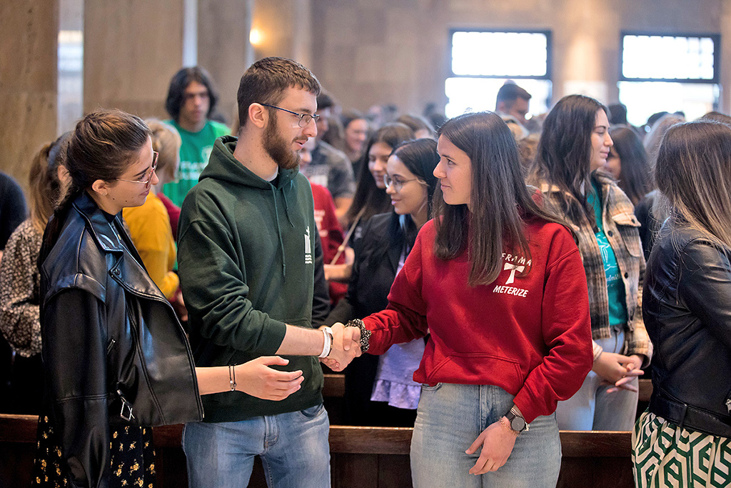 Naglasak nije na znaku, on može biti različit u različitim prilikama ili u različitim narodima, nego na velikom nutarnjem daru: nositi u sebi Krista i njegov mir i drugima ga prenositi. Samo tako mir može doći i u ovaj naš nemirni svijet za koga molimo i u svakom misnom slavlju.