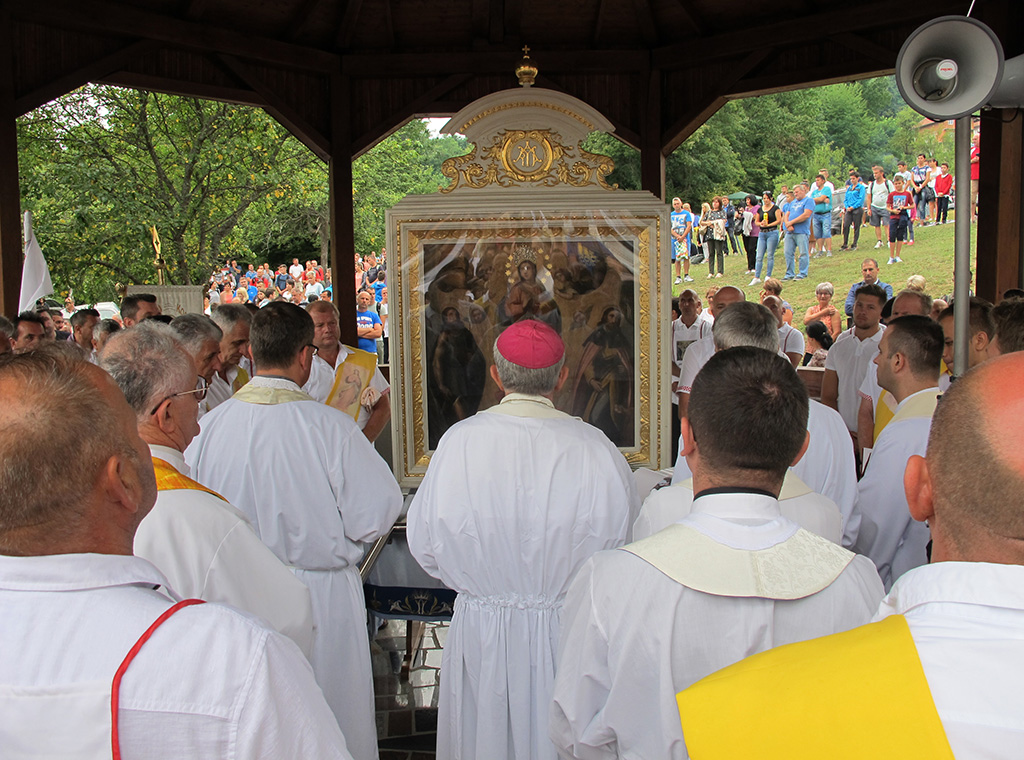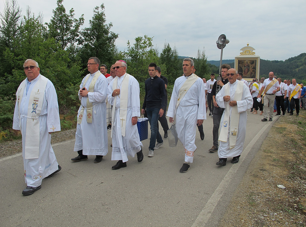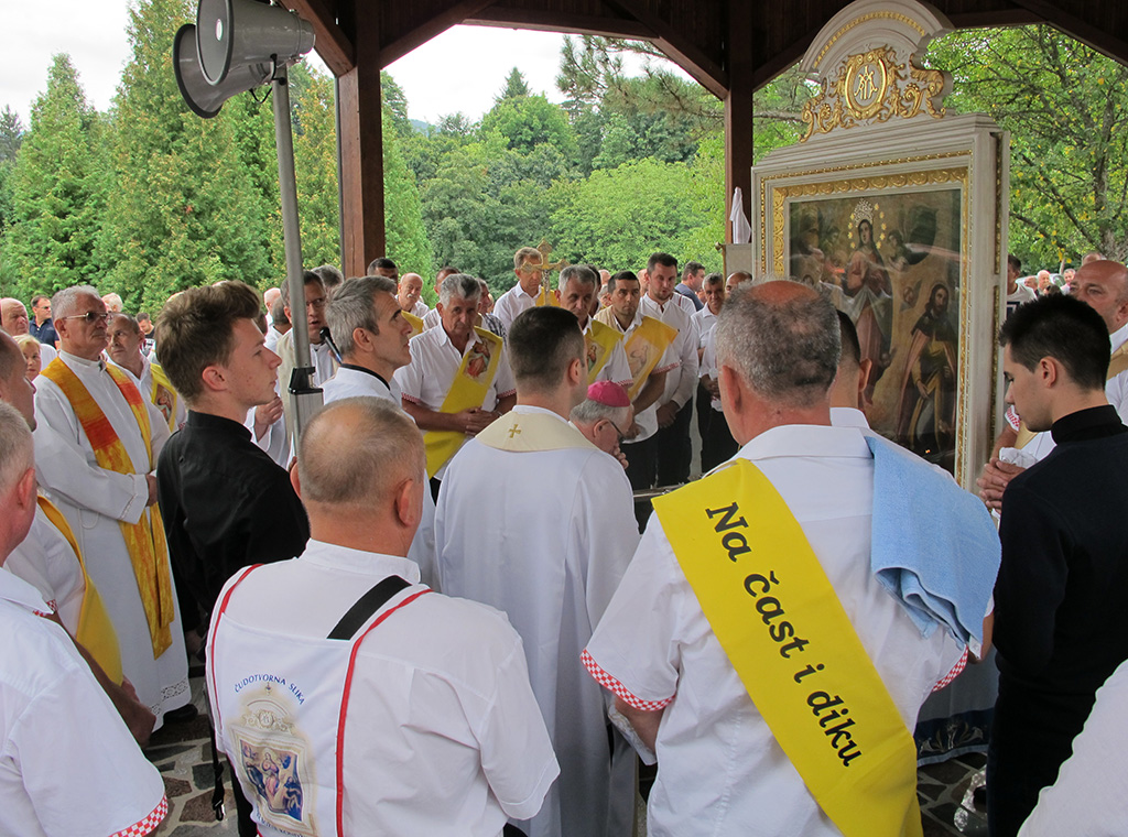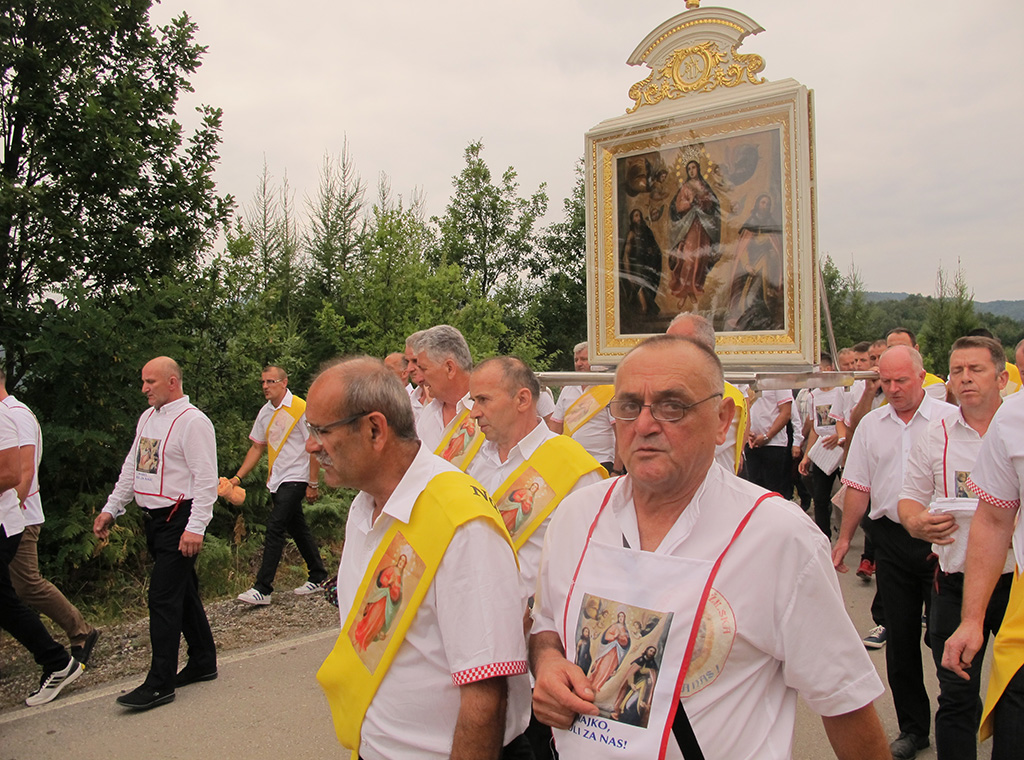 „Došli smo u ovo svetište potaknuti zavjetom naših predaka i osobnom pobožnošću i ljubavlju prema BDM, na kojem se od davnina čuva i pobožno štuje čudotvorni lik Gospe na nebo uznesene, da i mi također uputimo svoje molitve i nadanja ali i predamo svoje boli, brige, nesigurnosti i bojazni Mariji, našoj pomoćnici i zagovornici, jer znamo i vjerujemo da će nas ona razumjeti, prihvatiti i pomoći nam svojim zagovorom“, kazao je vlč. Boris.