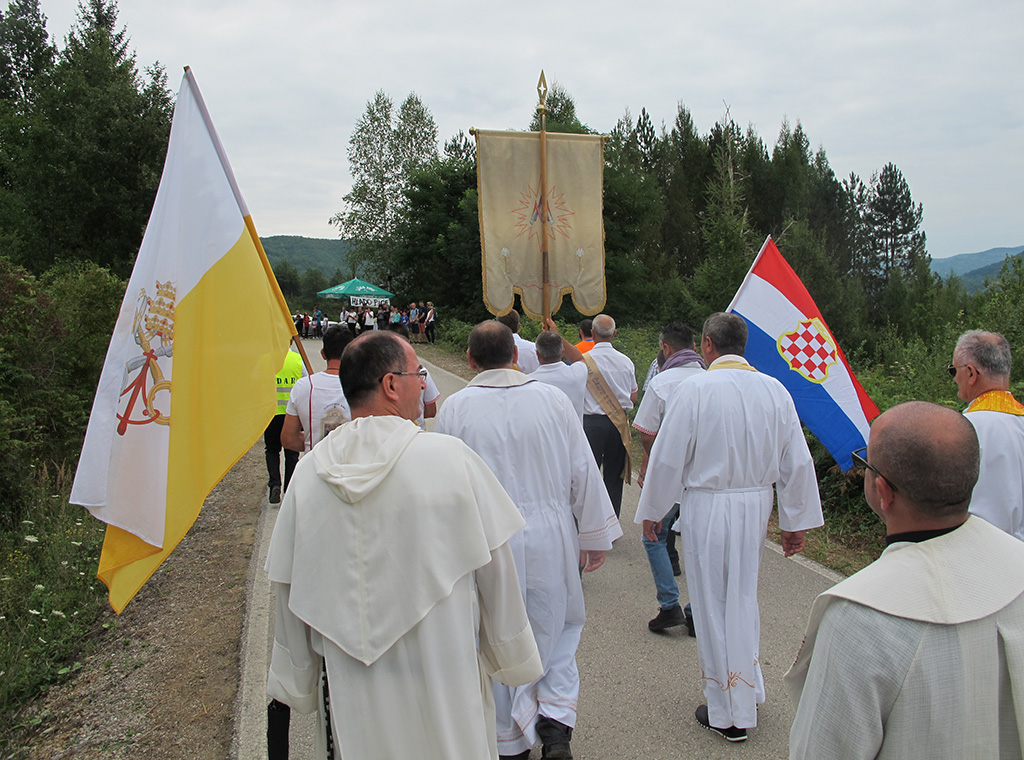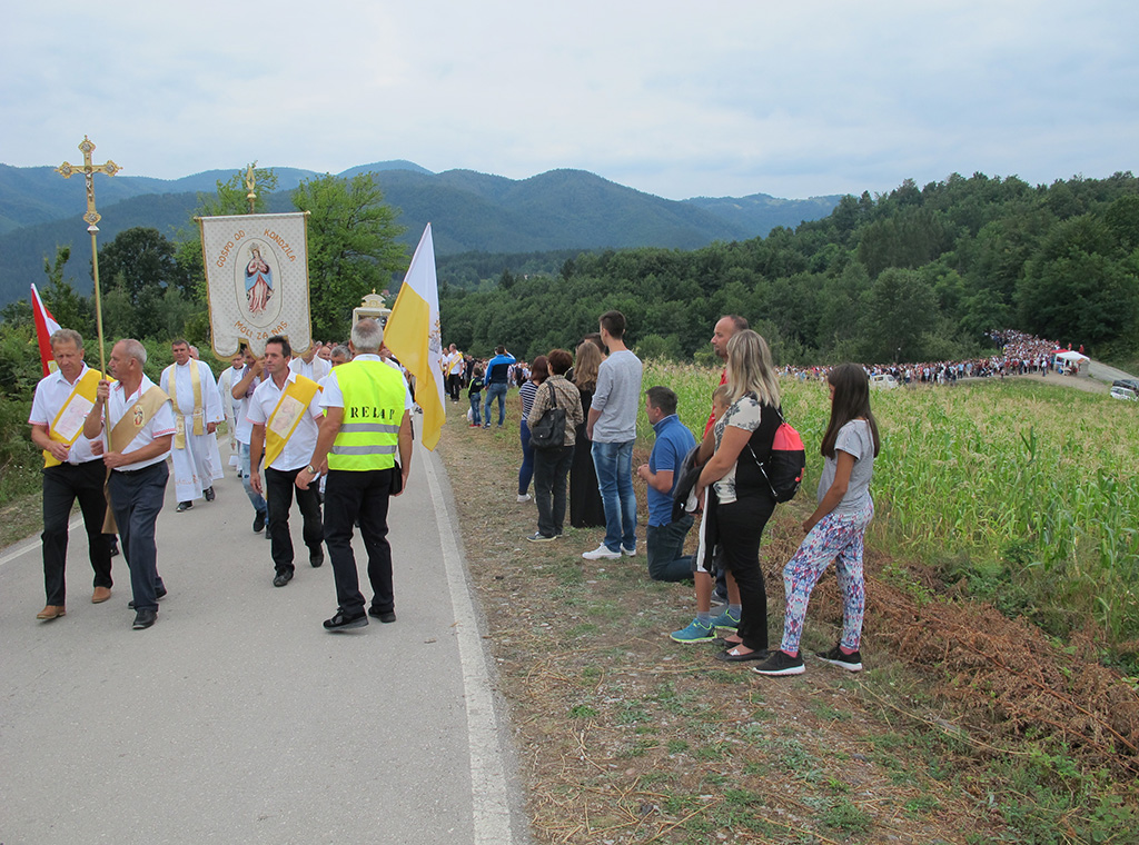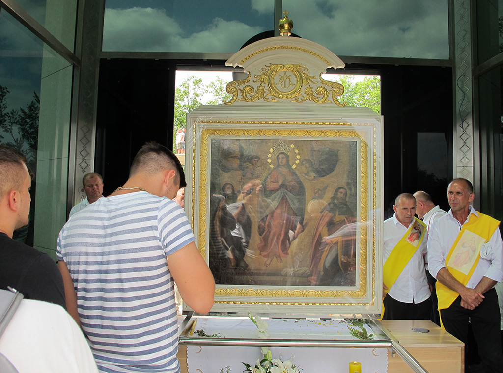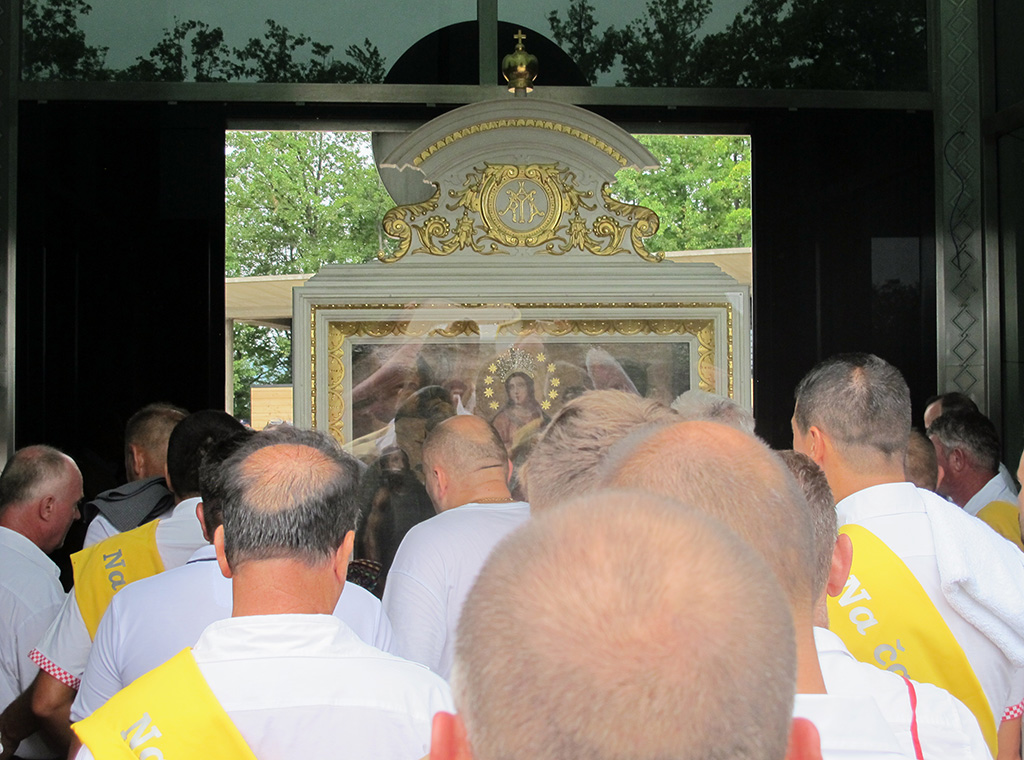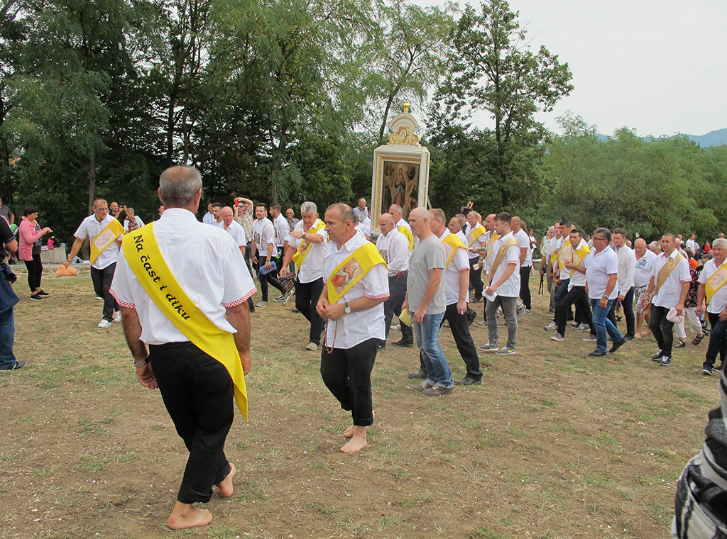 „Došli smo u ovo svetište potaknuti zavjetom naših predaka i osobnom pobožnošću i ljubavlju prema BDM, na kojem se od davnina čuva i pobožno štuje čudotvorni lik Gospe na nebo uznesene, da i mi također uputimo svoje molitve i nadanja ali i predamo svoje boli, brige, nesigurnosti i bojazni Mariji, našoj pomoćnici i zagovornici, jer znamo i vjerujemo da će nas ona razumjeti, prihvatiti i pomoći nam svojim zagovorom“, kazao je vlč. Boris.