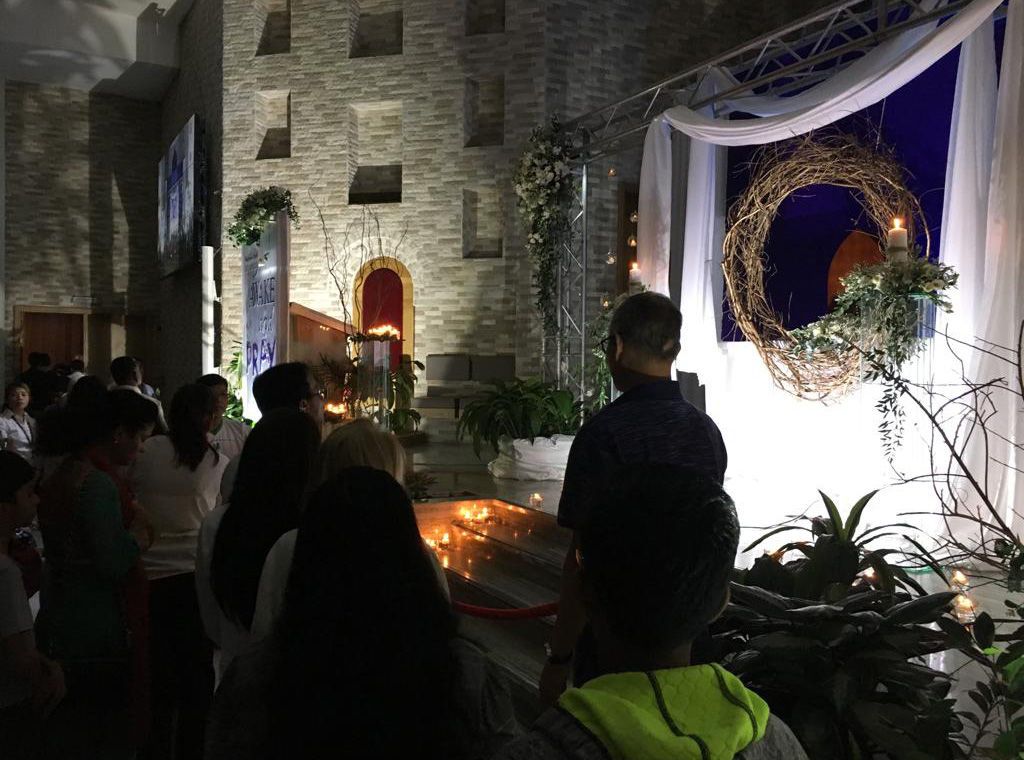Nekoliko minuta prije ezana s obližnje džamije, od 5 sati ujutro, na Veliki petak, rijeke vjernika u Abu Dhabiu čekaju kako bi kleknuli i šutjeli pred Euharistijom izloženom za klanjanje nakon jučerašnje Mise večere Gospodnje.