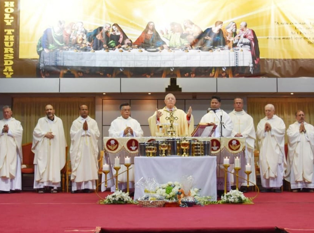 Misa koju je predvodio biskup slavljena je vani, u dvorištu katedrale Sv. Josipa. Nakon homilije, mons. Hinder je u obredu oprao noge dvanaestoro vjernika iz svoje multietničke župe: indijskom studentu, filipinskom radniku, supruzi jednog Škota, oboljelom od skleroze…