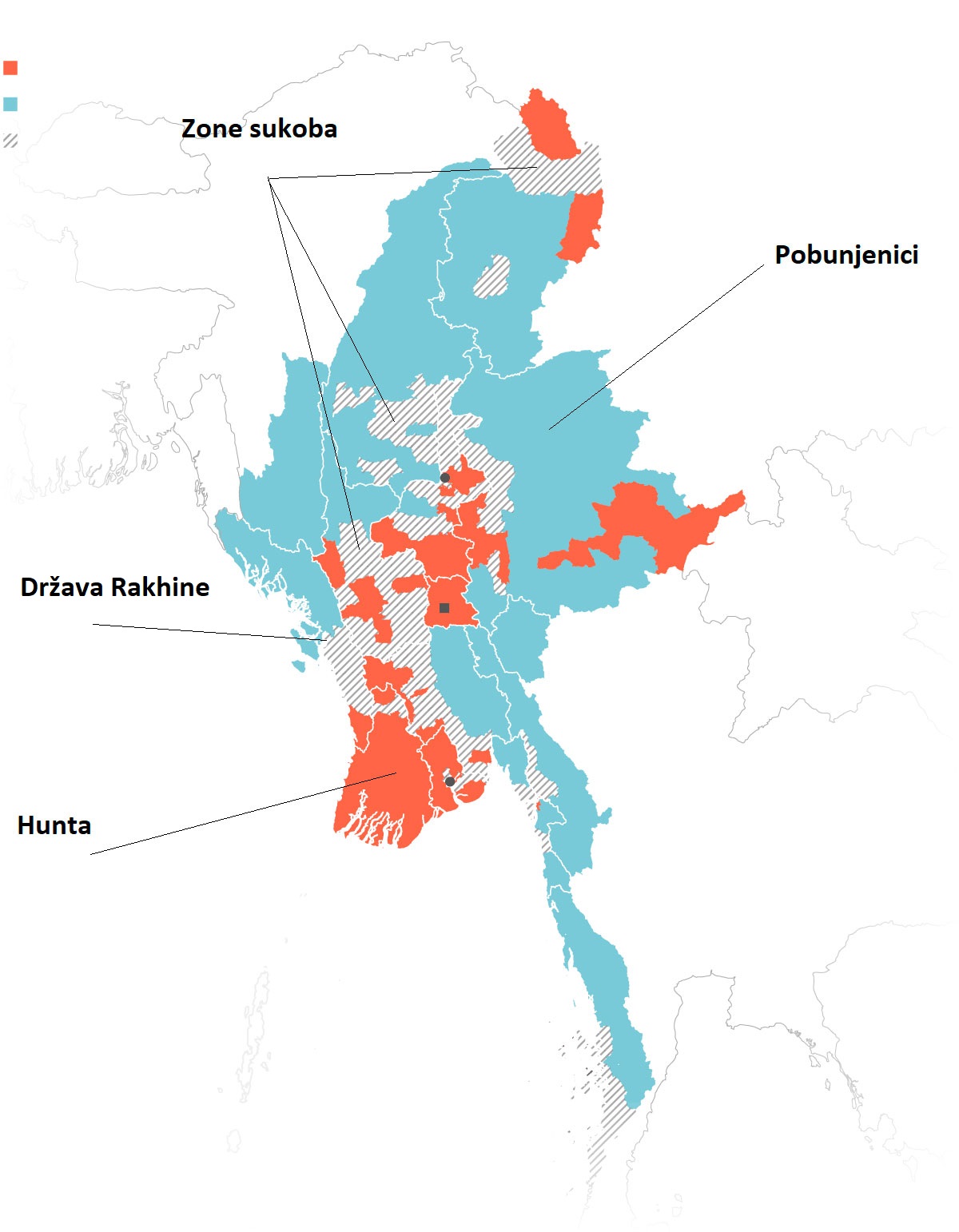 Prema izvješću, najmanje 5 350 civila ubijeno je, a više od 3,3 milijuna ljudi raseljeno je u posljednje tri i pol godine. Također, više od polovice stanovništva živi ispod granice siromaštva, prvenstveno zbog nasilja. Više od 27 000 ljudi je uhićeno, a oni koji su pritvoreni suočeni su s "uvredljivim ispitivanjem, zlostavljanjem u pritvoru i uskraćivanjem pristupa zdravstvenoj skrbi". Vojna hunta danas kontrolira manje od polovice zemlje, a u borbu je uključeno čak 14 pobunjeničkih frakcija.