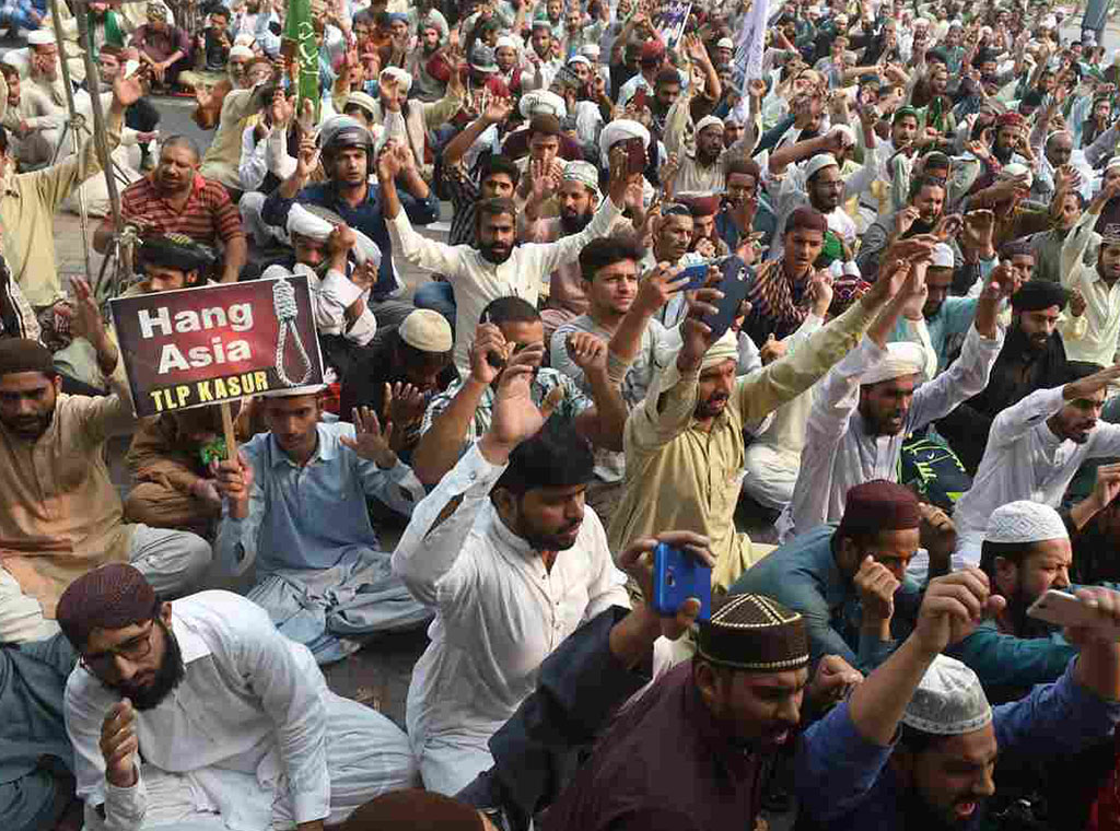 Nakon njezina oslobođenja 31. listopada 2018., nasilje se prenijelo i izvan granica Pakistana, predvođeno Islamskom radikalnom strankom Tehreek-e-Labbaik Pakistan (TLP). Policija je 23. studenoga uhitila njihova lidera Khadima Hussaina Rizvia, ali je on zaprijetio fetvom protiv sudaca koji su oslobodili Bibi. Nemiri su utihnuli tek kada je vlada obećala zadržati ju u državi i dopustiti ponovljeno razmatranje njezina puštanja na slobodu.