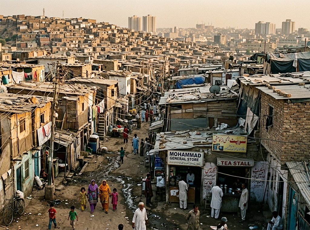 Inače, u Pakistanu su „neformalna naselja“, poznata pod nazivom katchi abadis, područja koja su nastala bez službenog urbanističkog plana i bez zakonskih dozvola za gradnju. Ova naselja čine značajan dio urbanog krajolika u velikim gradovima poput Karachija, Lahorea i Islamabada, a procjenjuje se da u njima živi skoro polovina gradskog stanovništva, pogotovo u Karachiju.