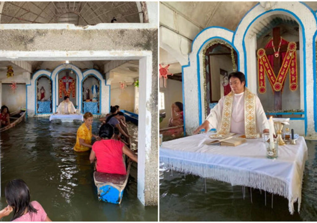 Otac Mon R. Garcia III s Filipina, objavio je na svom Facebook profilu fotografije s “posljednje mise” u potopljenoj crkvi u naselju Sitio Pariahan koje se nalazi tridesetak kilometara od glavnog grada Manile.