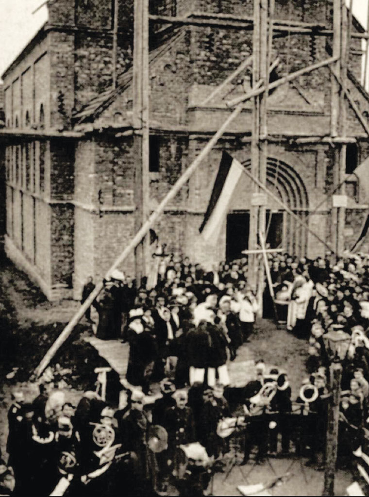 Blagoslov temeljnog kamena za crkvu je obavljen 28. travnja 1907. Radovi su dobro napredovali te je u studenom 1907. blagoslovljen križ za vrh zvonika.