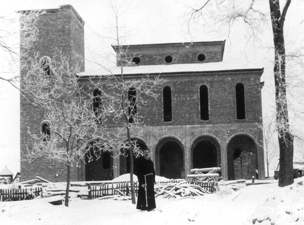 Gradnja župne crkve Svetog Franje Asiškoga u Žeravcu - snimljeno 1963.