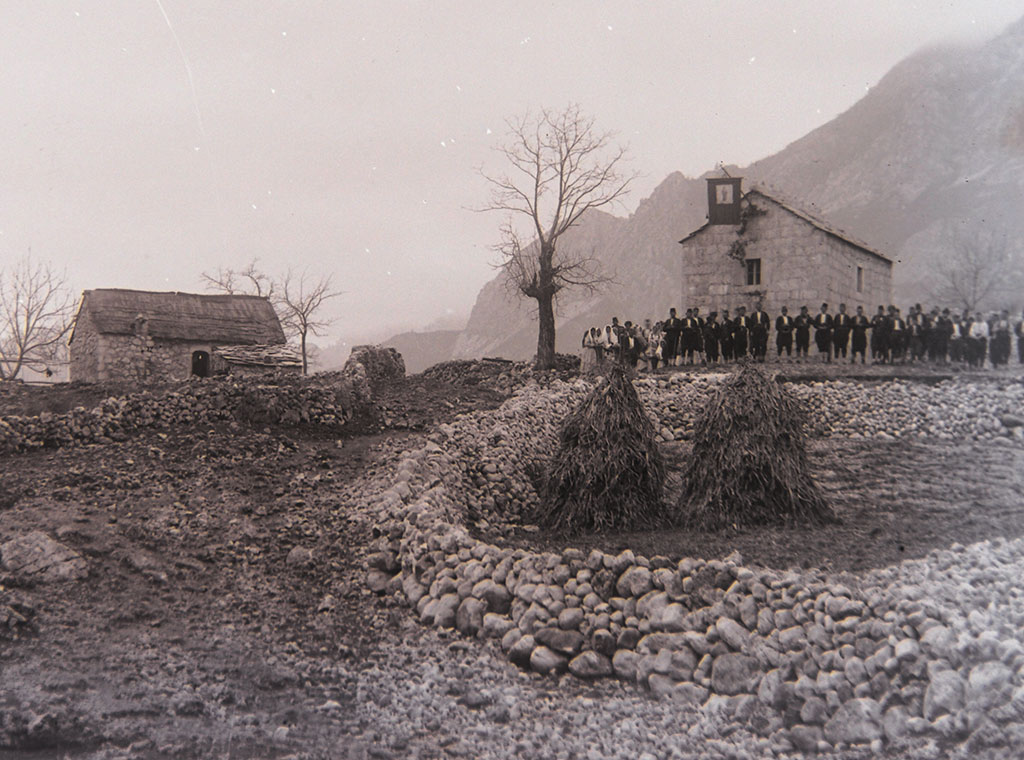 Blagoslov zvona kapele Sv. Ante Padovanskog u u Gornjim Močilima 1937. Foto iz starine