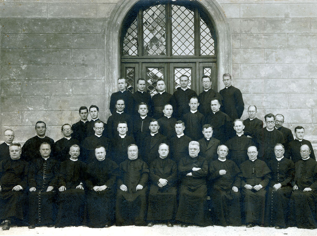 I. red (s lijeva na desno): Anđelko Franjičević, župnik u Jelaškama; Drago Čelik, upravitelj Napretkova konvikta; Niko Jurić, župnik u Drežnici; Čedomil Čekada; Ilija Violoni, župnik u Brčkom; Terenčin D.I.; Anto Alaupović, župnik u Novom Sarajevu; Ivan Papić, župnik u Gromiljaku; Franjo Momčinović, župnik u Derventi; Jozo Divić, župnik u Kaknju; Dane Pušić, župnik u Žepču; Juraj Majetić, župnik u Otočaku.
