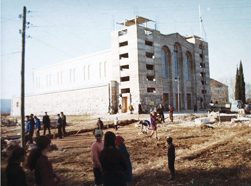 Na fotografiji je "uhvaćeno" stanje radova na izgradnji zvonika: 1968. - 1969.