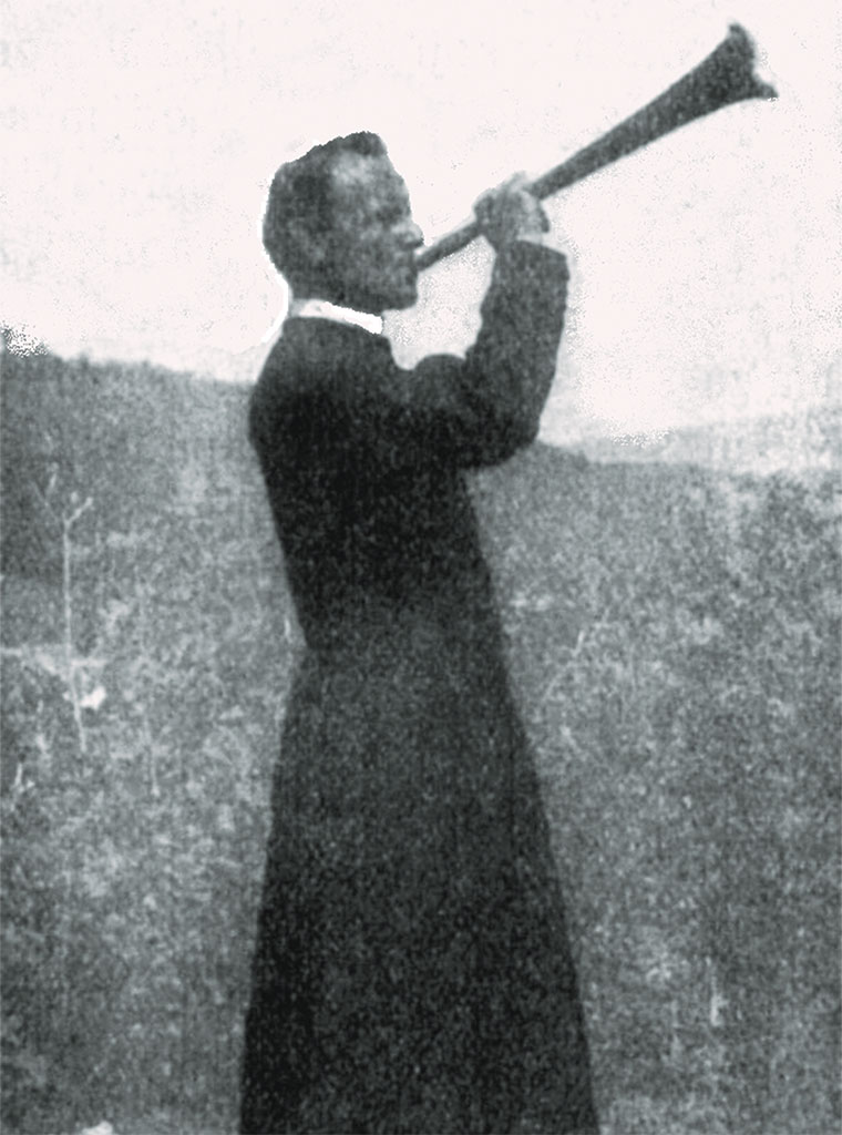 Prvi župnik u novoosnovanoj župi Stjepan Pašalić trubom poziva vjernike na sv. misu. Župa je osnovana 1910. odvajanjem pojedinih naselja od župe Bugojno. Dok nije bilo nabavljeno zvono, župnik je velikom i zvučnom trubom pozivao vjernike k službi Božjoj.