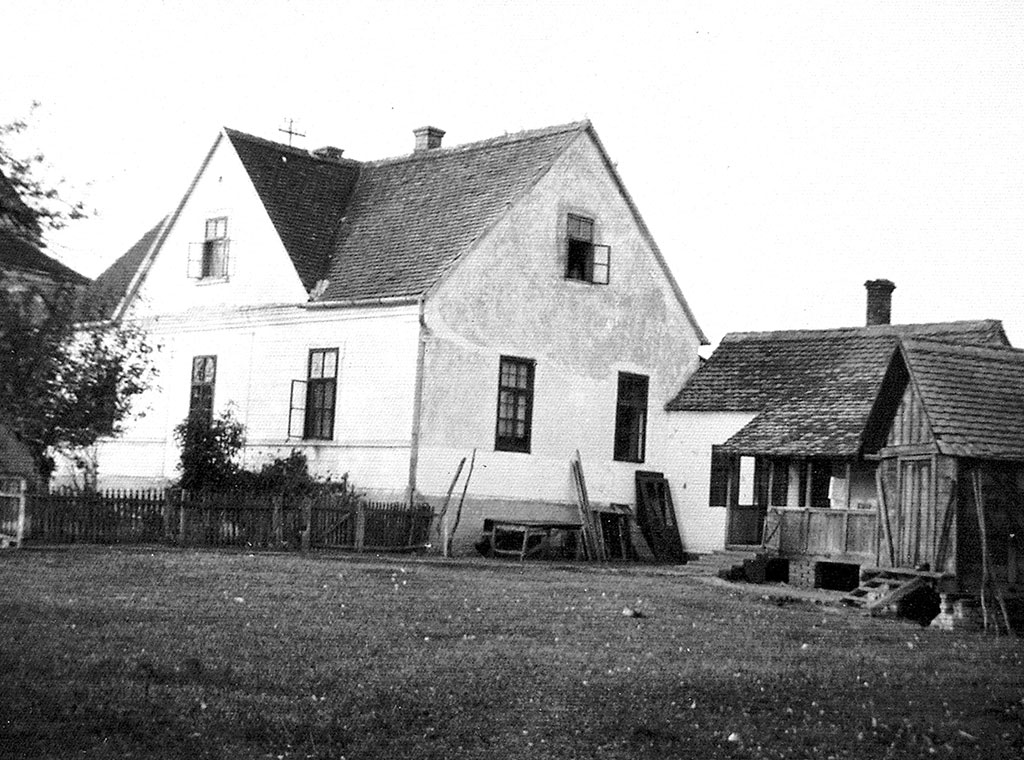 Župna kuća u Vidovicama snimljena prije 1970. godine. Lijevo se vidi dio crkve.