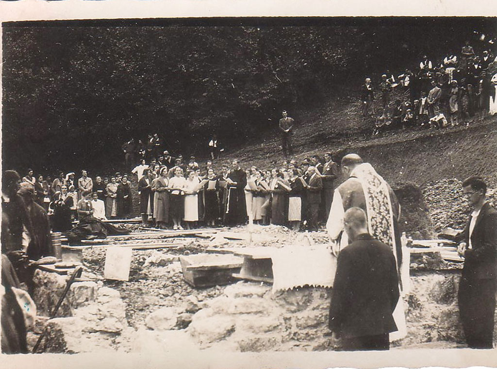 Blagoslov temeljnog kamena za planinarski dom Koprivnica kod Bugojna 1939. godine.